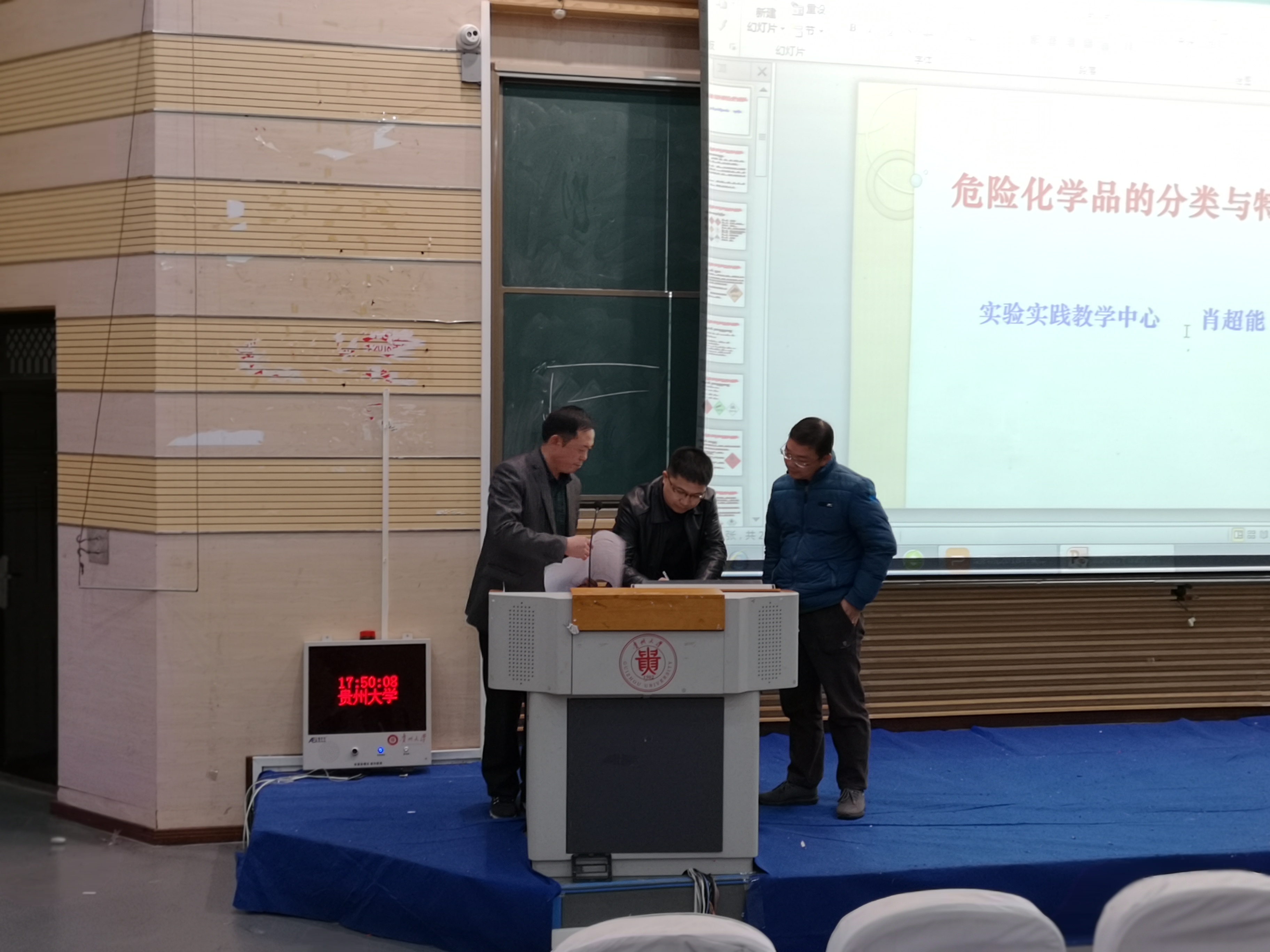 动物科学学院实验实践教学中心主任肖超能进行了“危险化学品的分类与特性”培训。