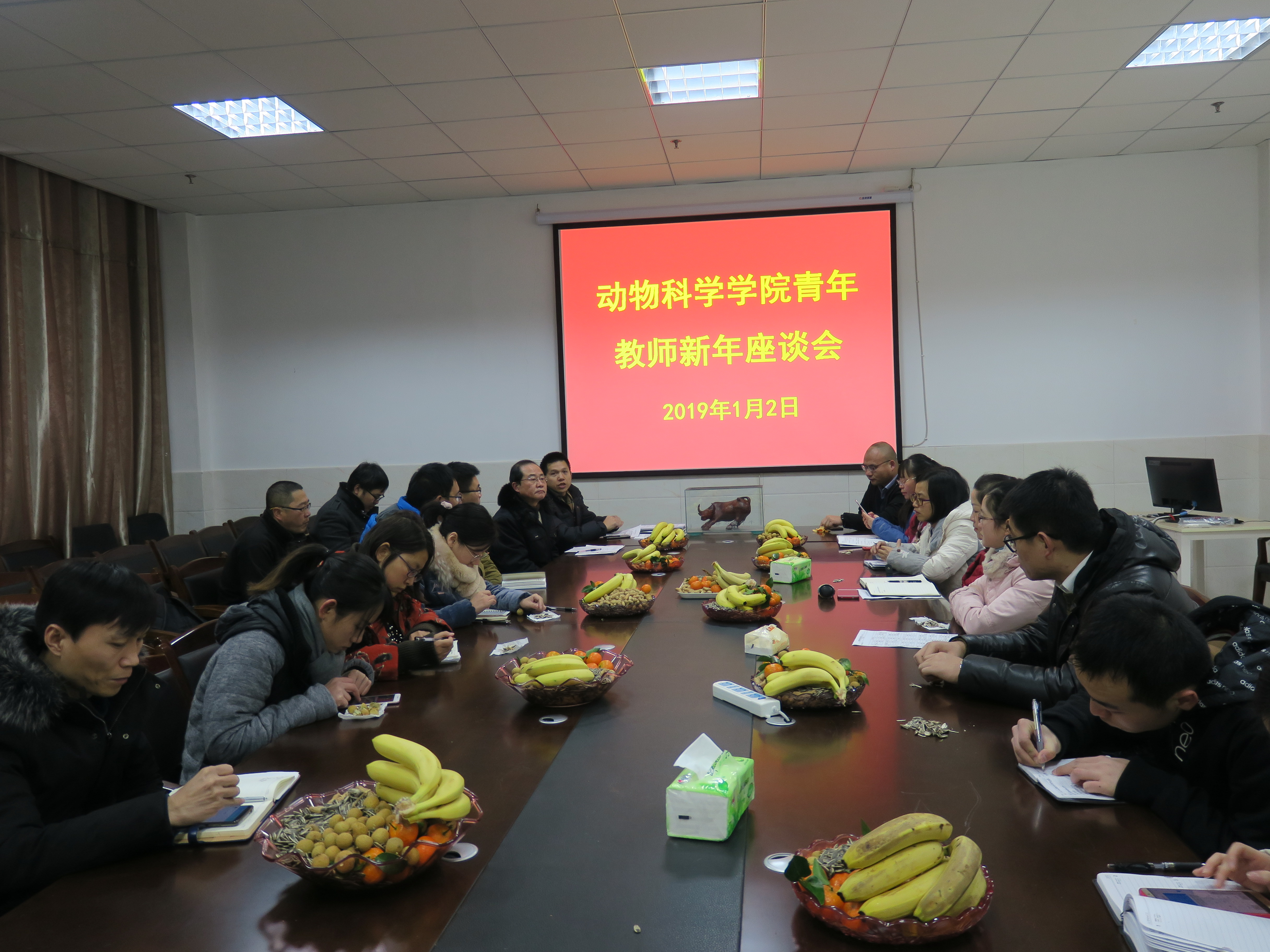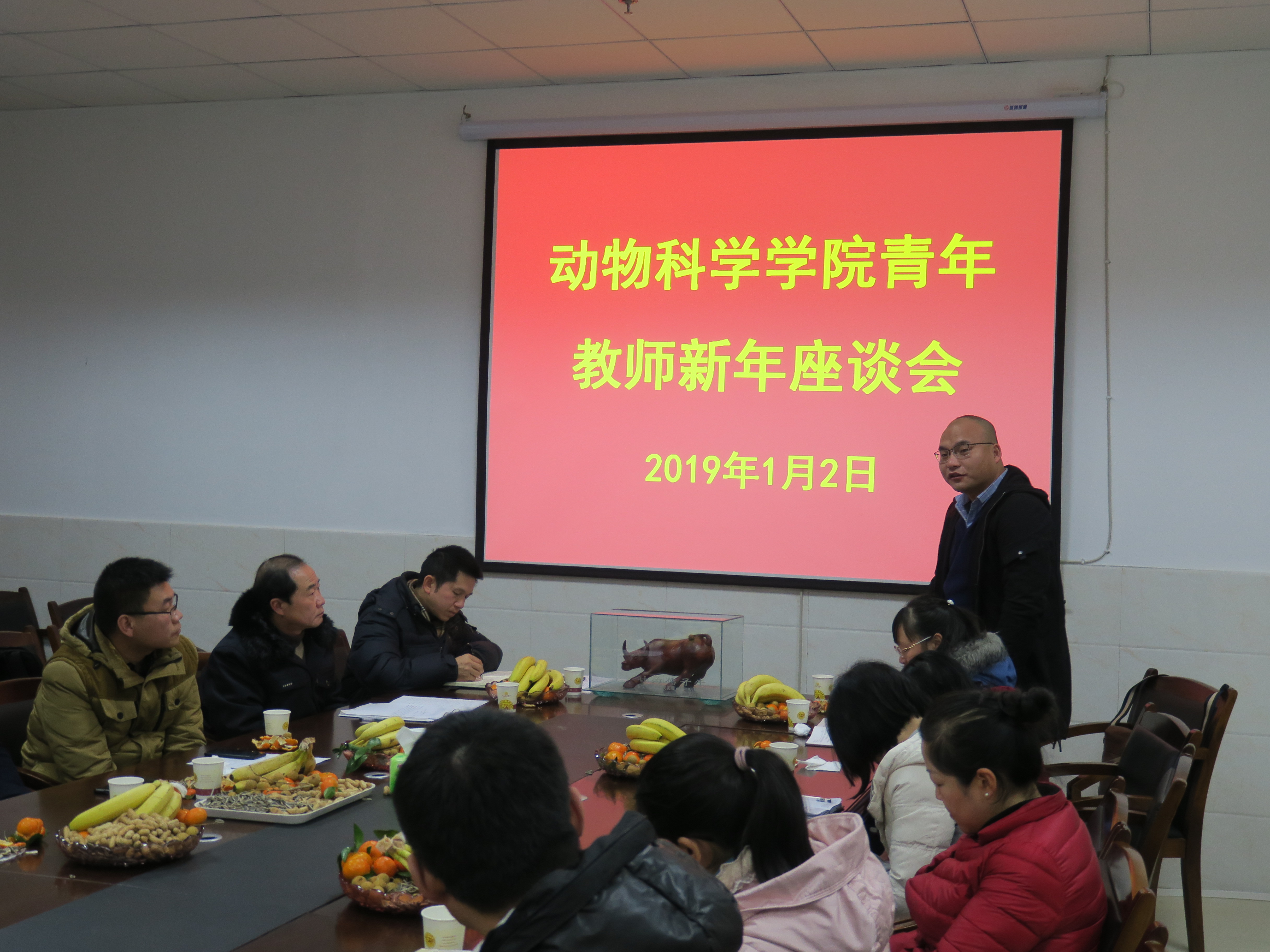 2019年1月2日,动物科学学院青年教师座谈会在崇学楼206会议室举行。学院党委书记谭诗信、院长陈祥盛、党委副书记李秋蓉、副院长陈超出席座谈会,学院各科室负责人和45岁以下(含45岁)青年教师参加会议。座谈会由院长陈祥盛主持。