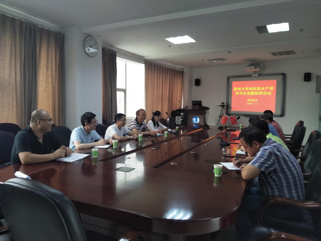中国水产科学研究院首席科学家、农业部淡水生物多样性保护重点实验室主任危起伟,长江所生物室主任杜浩,农业部淡水生物多样性保护重点实验室副主任张辉,濒危鱼类保护组主要负责人吴金明、刘志刚、李君轶等领导专家与我院水产系师生一行进行了座谈交流。会议由危起伟主任主持,危主任首先对贵州大学动物科学学院水产系的师生一行来所交流座谈表示热烈欢迎。而后,危起伟研究员、姚俊杰教授分别介绍了各自单位的发展概况、科研成果、学科团队、创新平台、学科发展规划以及项目合作交流等相关情况。
