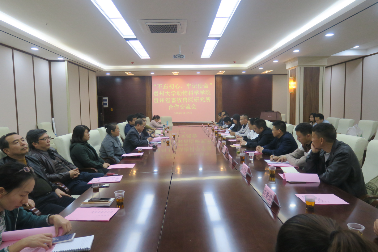 陈院长向与会人员介绍了我院基本情况,在学科建设、科学研究、人才培养、社会服务、师资力量等方面做了系统说明,并表示希望学院能与畜牧兽医研究所建立全方位、全天候的合作关系,在以后的合作工作中能各自发挥所长、共同打造贵州生态畜牧学高地。