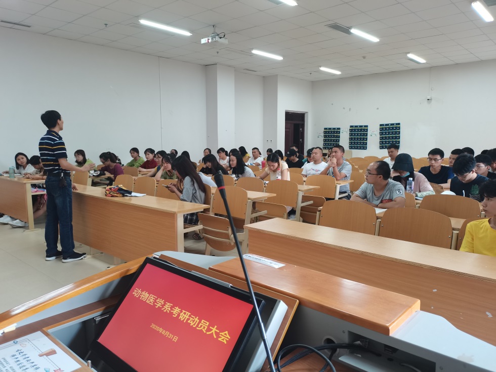 为了调动动物医学专业大三学子的考研积极性,进一步提升研究生报考率,力求在2020年研究生考试中有新的突破,2020年8月31日,我院动物医学系在西校区明俊楼123教室召开考研动员大会,系主任程振涛、副主任兼教研室主任温贵兰、教研室副主任杨颖出席动员会,动物医学专业2017级全体同学参加会议。