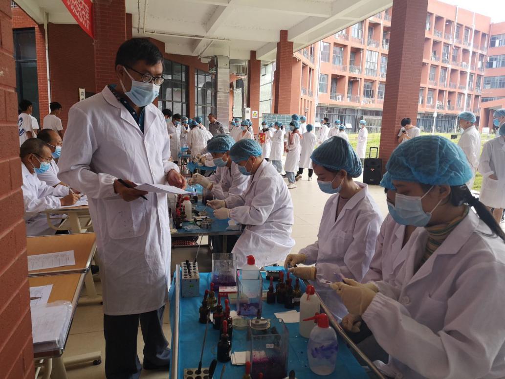 2020年9月7日上午,由我院动物医学系主办的第五届实践技能竞赛在贵州大学西校区崇学楼一楼举行。院党委书记谭诗信,党委委员兼动物医学系主任程振涛、副主任兼教研室主任温贵兰、教研室副主任杨颖及动物医学系全体老师出席竞赛活动,2017级全体本科生参加比赛,大赛由杨颖老师主持。