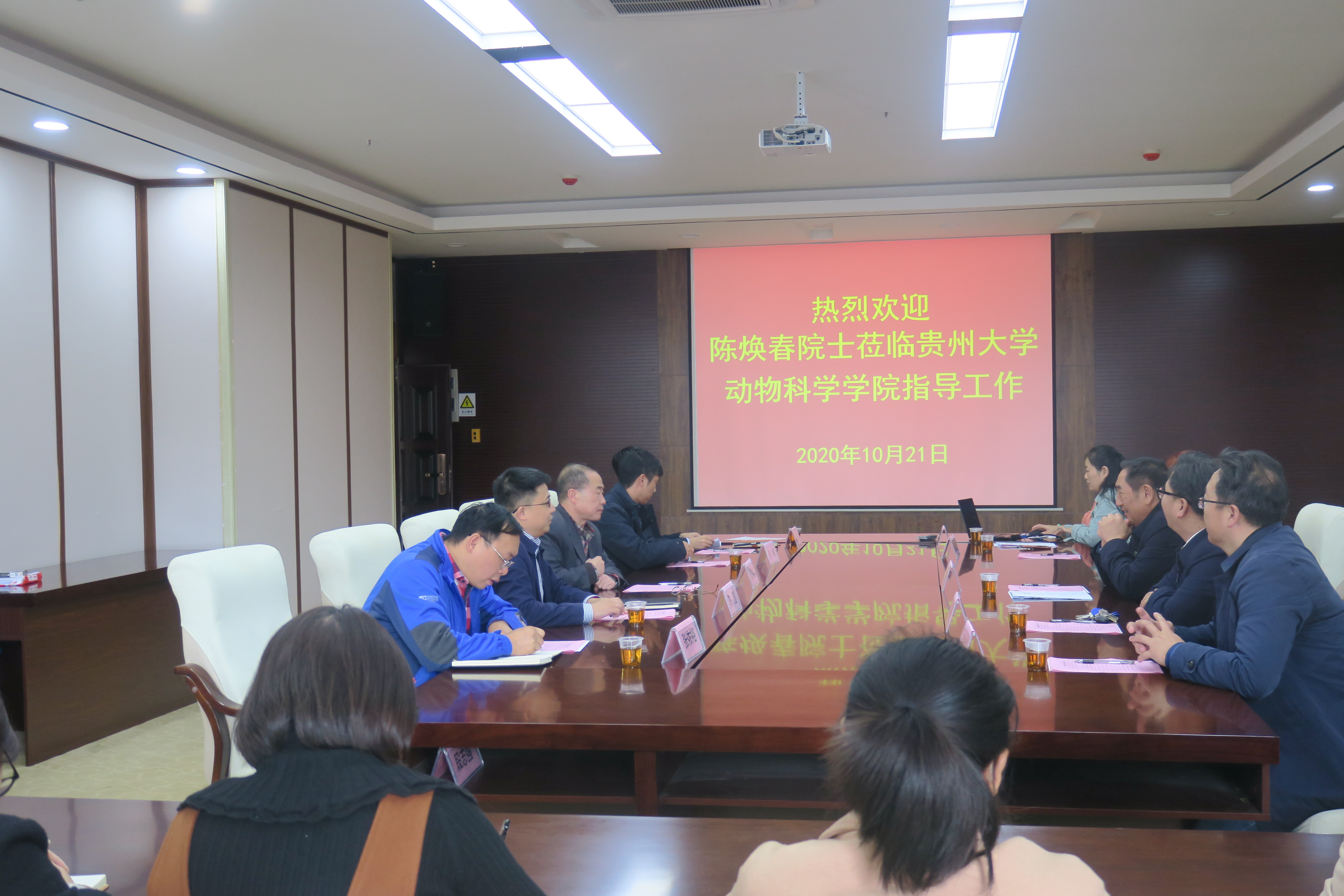 2020年10月21日,中国工程院院士、家畜传染病学专家、华中农业大学教授陈焕春先生应邀到贵州大学动物科学学院指导兽医学、畜牧学学科建设。