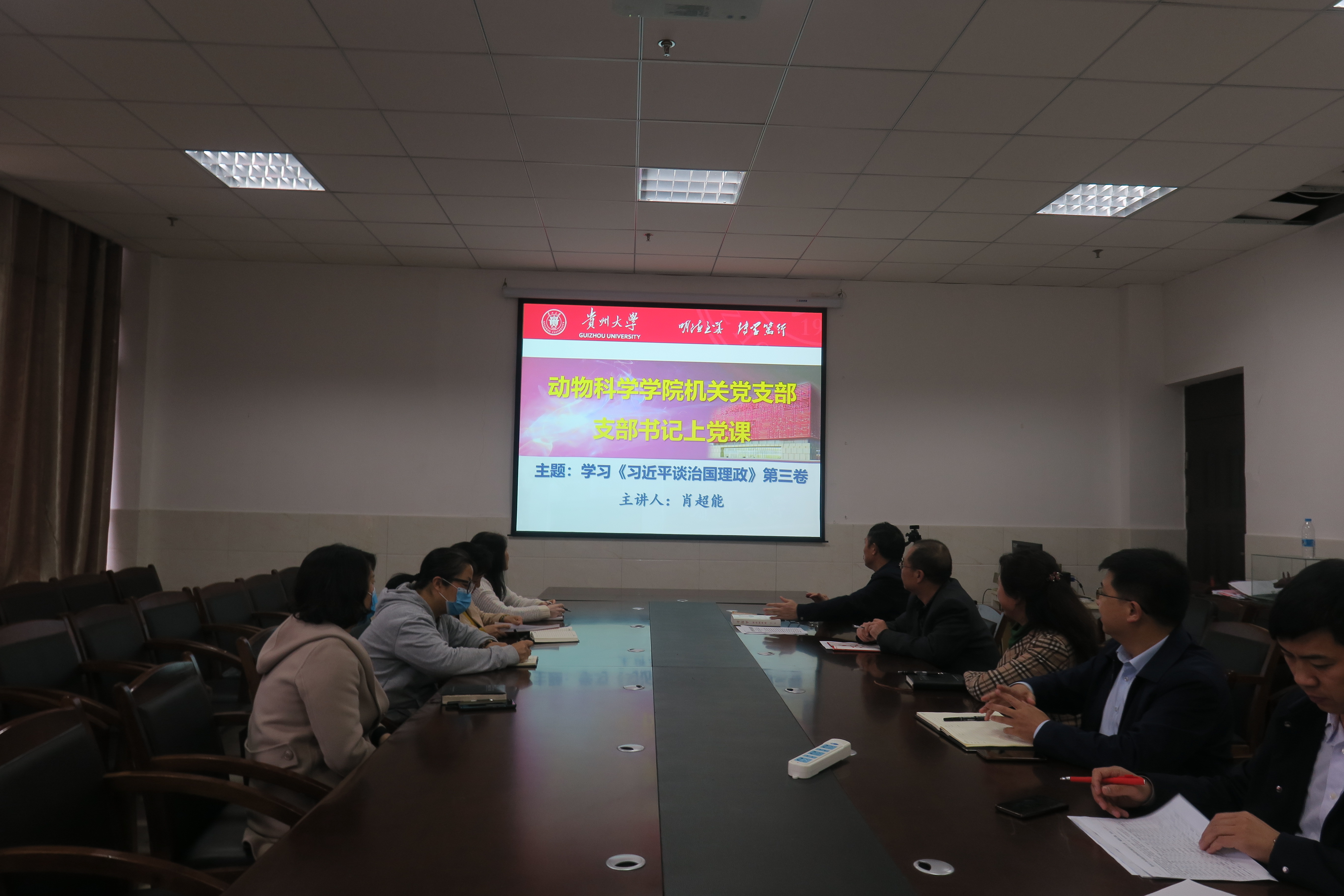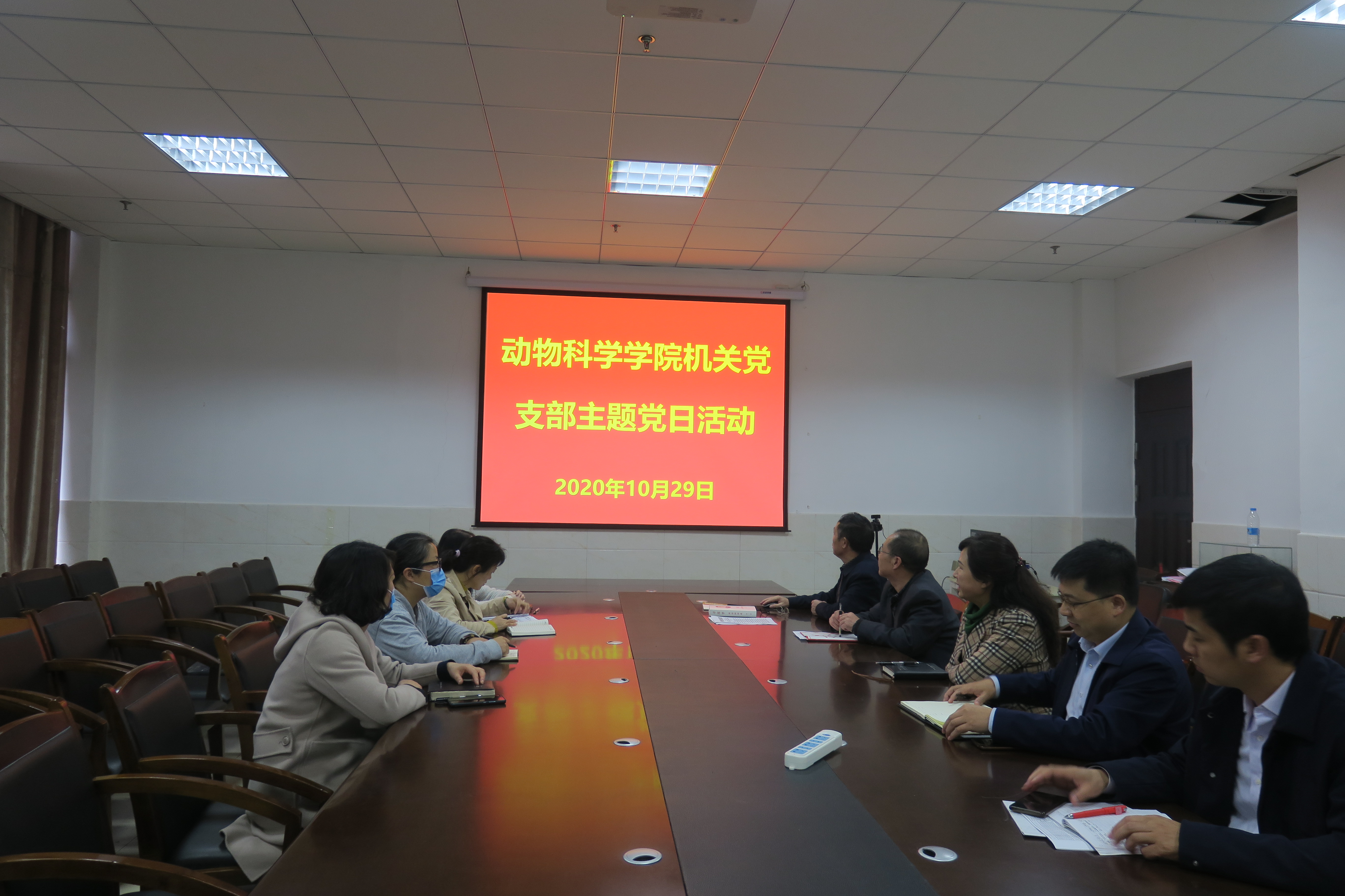 2020年10月29日下午,动物科学学院机关党支部在西校区崇学楼206会议室开展主题党日活动,支部在家的全体党员参与,学院新任党委书记罗聃宁列席本次活动。