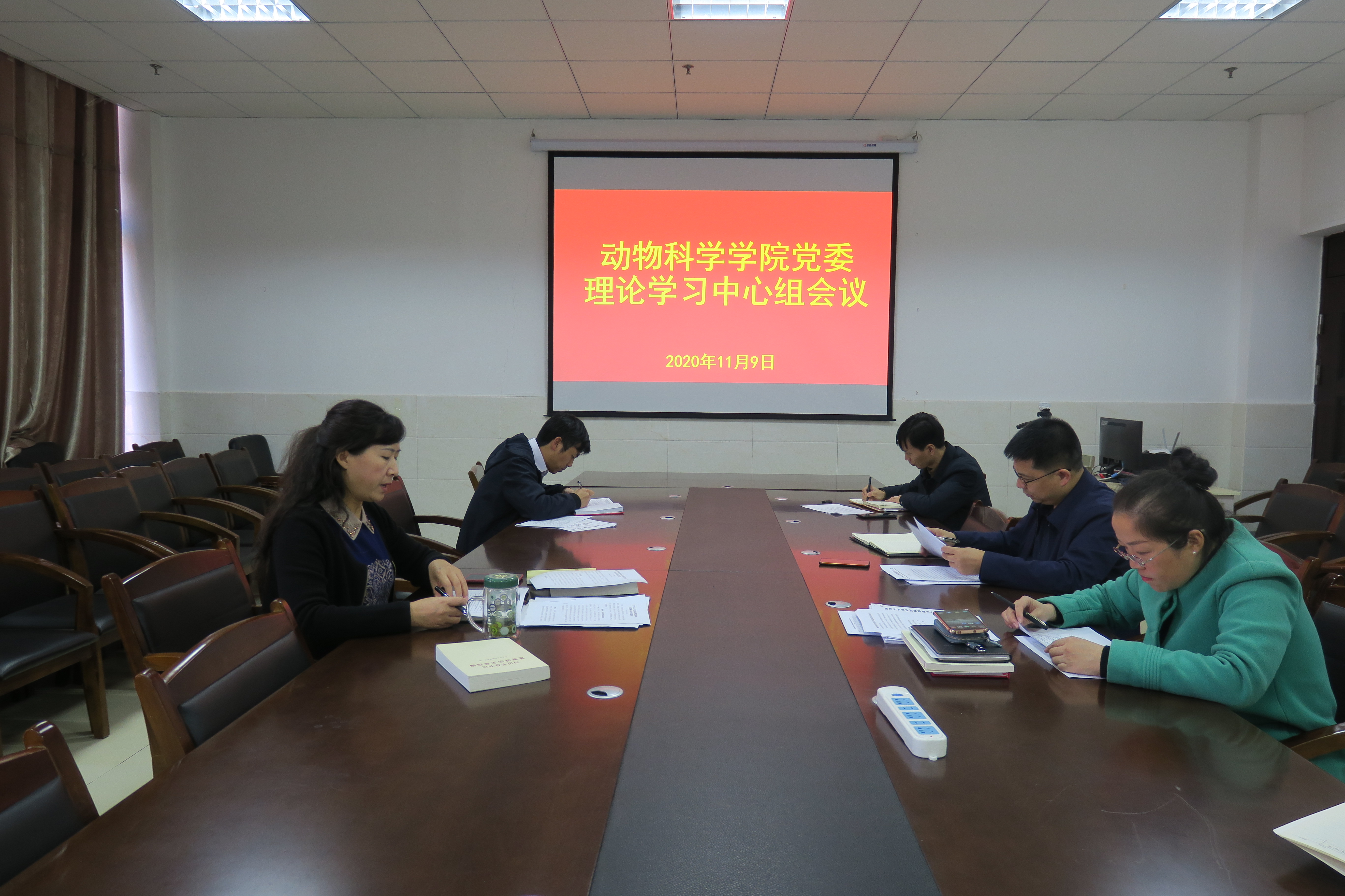 2020年11月9日上午,动物科学学院党委在崇学楼206会议室召开党委理论学习中心组会议,会议由党委书记罗聃宁主持,学院全体党委委员参加会议。
