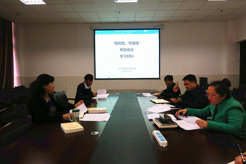 会上,与会委员重点学习了习近平总书记关于防范化解重大风险的系列重要论述,认真学习了全省警示教育大会精神。理论学习的同时,各位委员结合自身实际和分管联系工作情况进行了思考反思,并进行了发言。大家在发言中表示,作为高校党员干部,要切实提高政治站位,坚决贯彻落实以师生为中心的发展思想,坚持和落实生命至上、安全第一的理念,科学研判安全形势,全面加强隐患排查整治,进一步完善学院制度机制,优化应急预案及工作措施,真抓实干,切实增强学院师生的安全感、获得感和幸福感。罗聃宁在会上发言时强调:与会党员干部要进一步认真学习、深刻领会习近平总书记重要论述和重要指示精神,要深刻汲取安顺公交车坠湖等事件的惨痛教训,进一步增强底线思维和风险意识,始终绷紧安全风险防范这根弦,自觉把安全风险防范作为一项重大政治责任抓实抓好,进一步补足短板,建强制度,始终把安全发展理念贯穿到学院工作各领域各环节,全面提升学院安全风险防范整体能力和水平,用实际行动和效果来践行和检验“两个维护”。