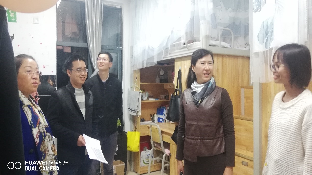 为进一步加强与学生交流,排查学生寝室安全隐患,提高学生安全意识,2020年11月18日晚,我院党委书记罗聃宁、党委副书记李秋蓉带领学院全体学生辅导员与班主任走访了全体本科生寝室,并对寝室开展了安全隐患排查。
