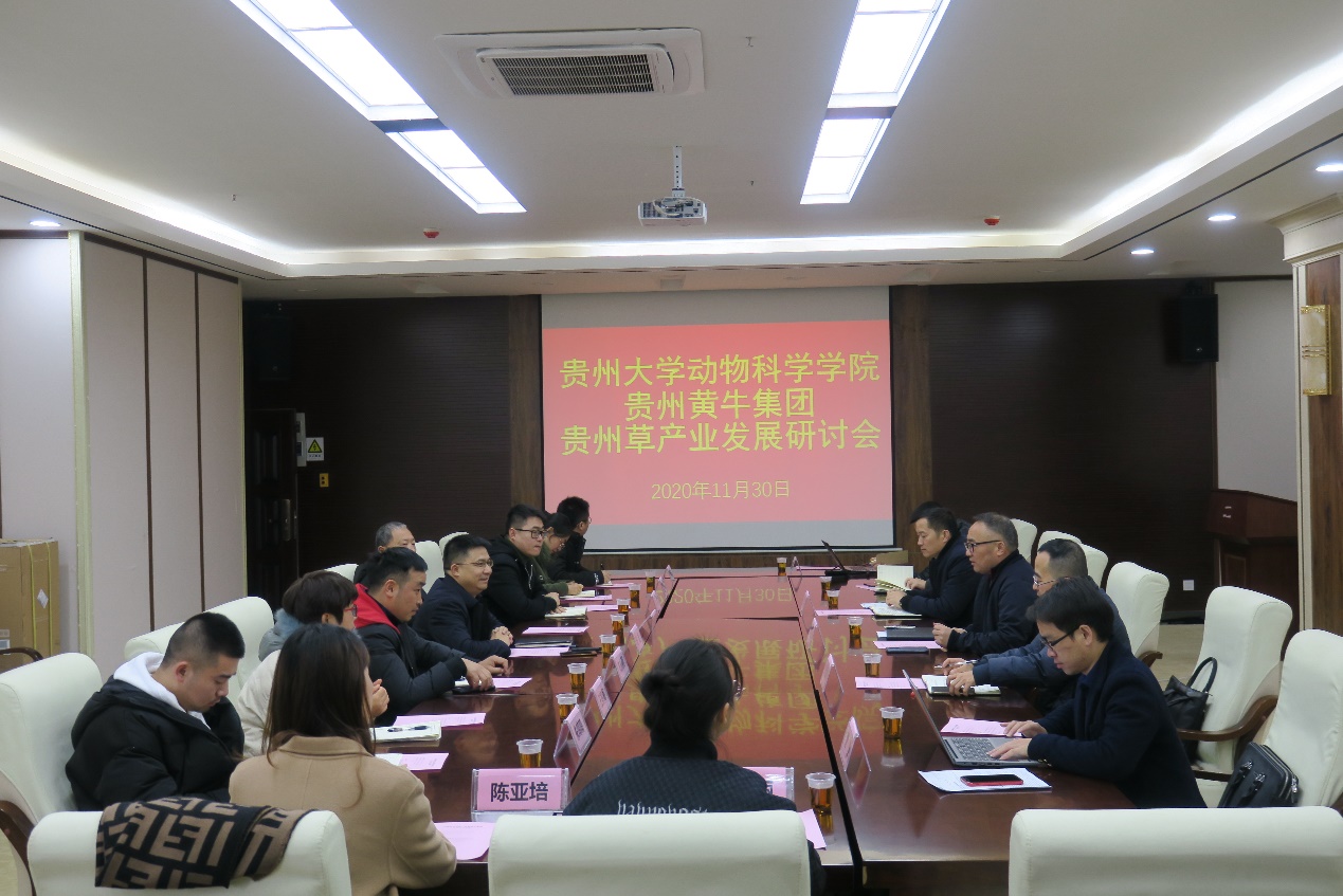 2020年11月30日贵州大学动物科学学院与贵州黄牛集团在贵州大学西校区崇学楼开展贵州草产业发展研讨会。