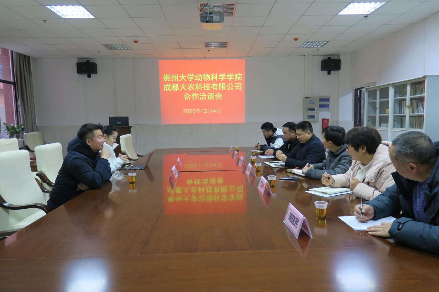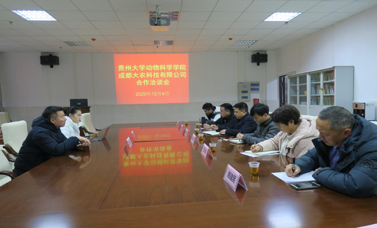 为加深校企合作,促进我省牛养殖产业发展,12月4日下午在崇学楼234会议室,我院与成都大农科技有限公司召开了合作洽谈会。成都大农科技有限公司董事长戴文建、董事长助理庞艺婷,动物科学学院院长陈超教授、办公室副主任熊建民、动物医学系主任程振涛博士一行参加了本次合作洽谈会,会议由陈超主持。