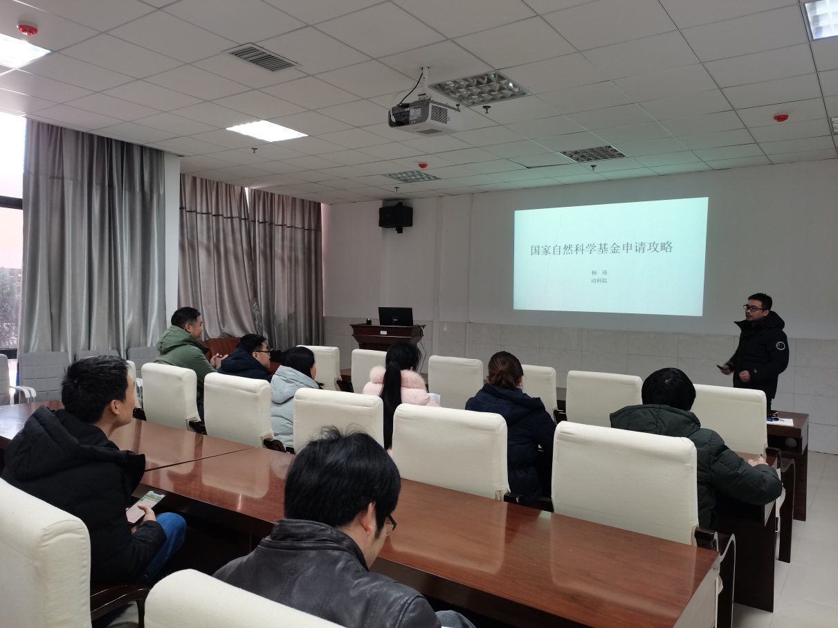 2020年12月21日下午2点,由动物医学系组织的“国家自然科学基金申报经验分享会”在动物医学系234会议室举行。动医系党支部书记鲜思美、宣传委员黄涛、教研室副主任杨颖、新进教师朱二鹏、庞峰、王碧、林如涛等十余人参加会议。