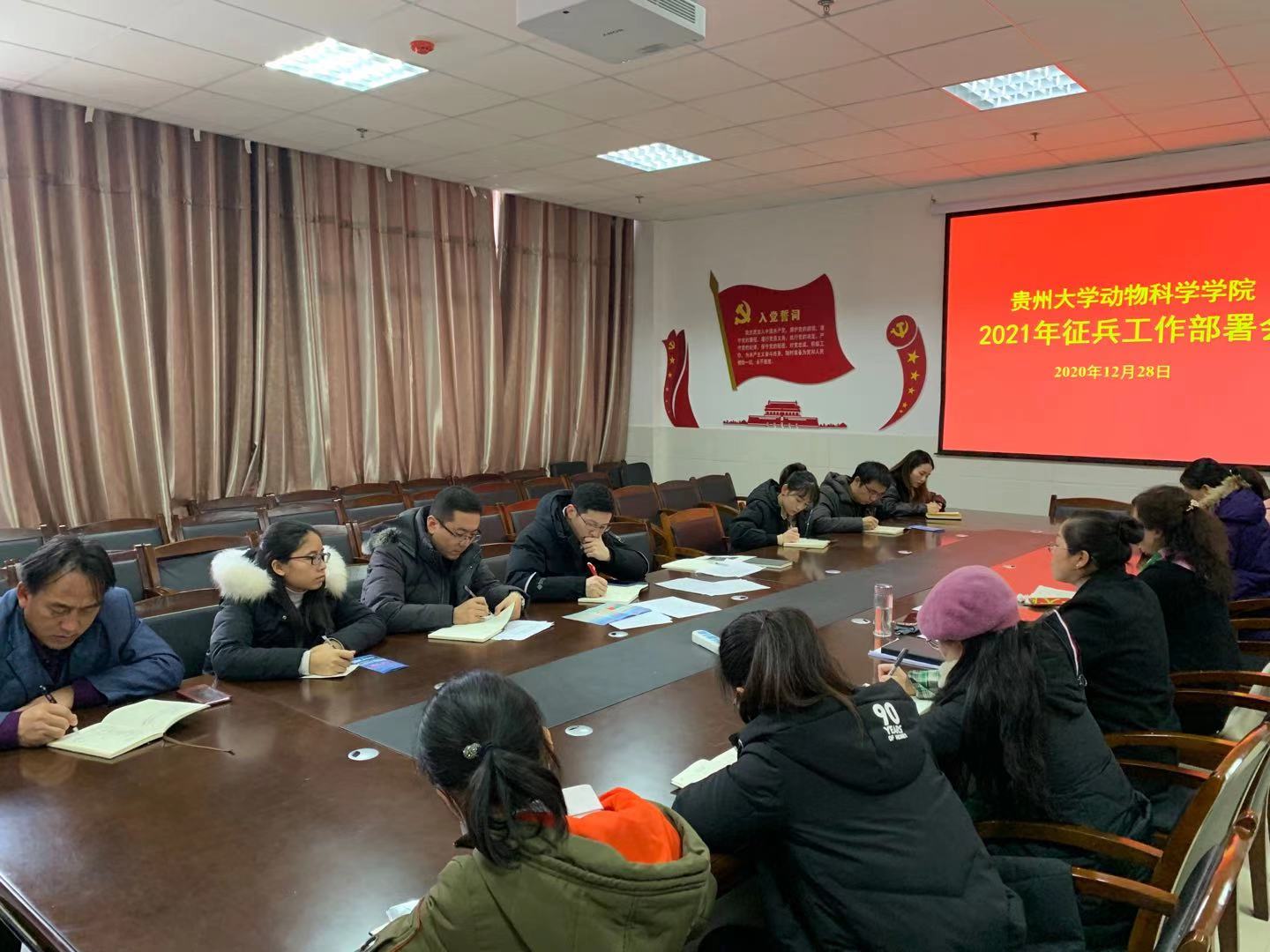 为贯彻落实大学生应征入伍工作任务和精神,高标准、高质量做好我院征兵工作,我院于2020年12月28日在崇学楼206会议室召开2021年征兵工作部署会。院党委书记罗聃宁、副书记李秋蓉出席会议,学院全体学生辅导员与本科生班主任参加此次会议。会议由党委副书记李秋蓉主持。