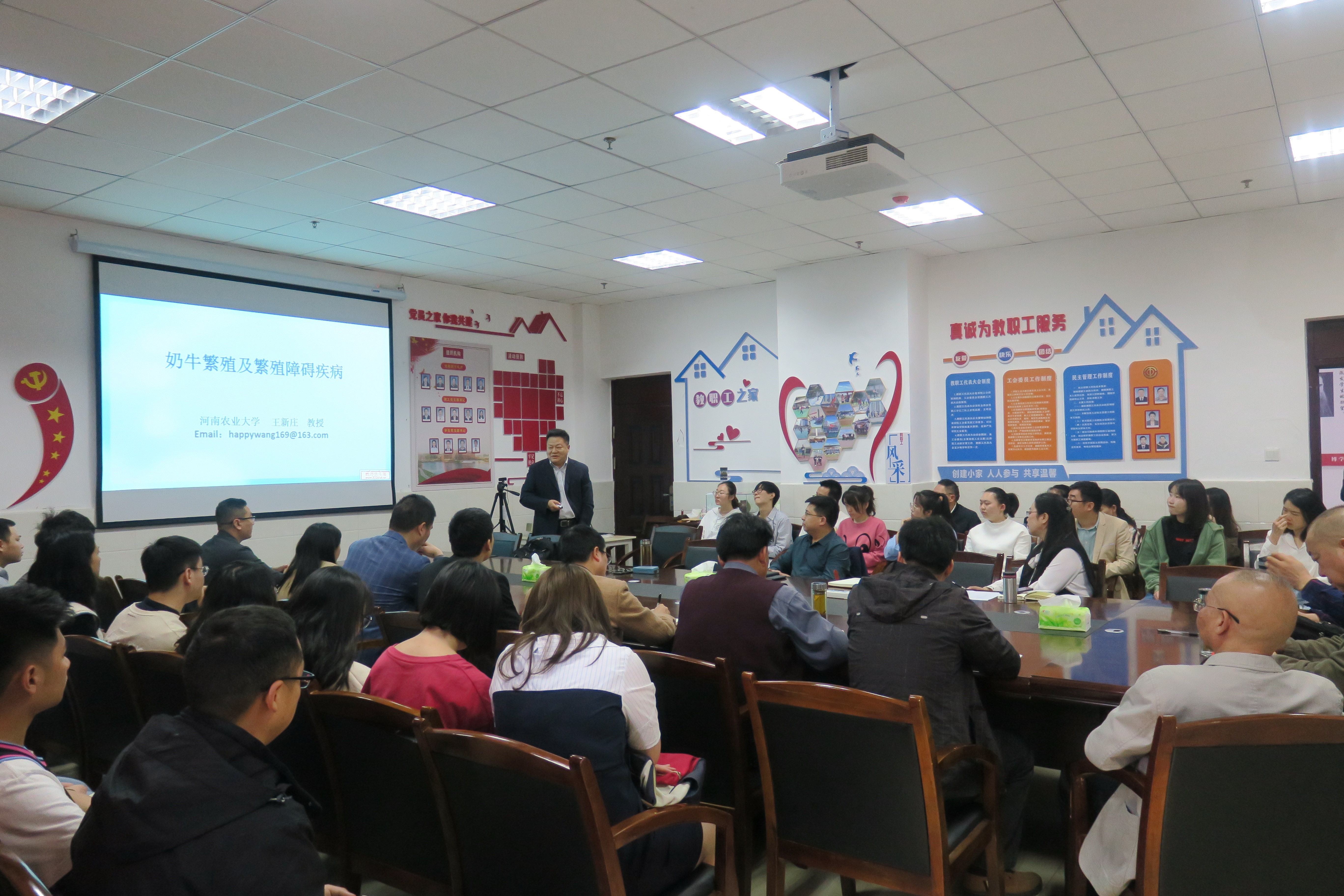 2021年3月30日,国家黄牛遗传委员会主任委员、河南农业大学王新庄教授应我院邀请,在崇学楼206作题为“奶牛繁殖及繁殖障碍疾病”的学术报道告。学院党委副书记、院长陈超教授、动物医学教研室主任温贵兰教授、动物医学系部分教师及研究生代表共40余人参加此次交流会。