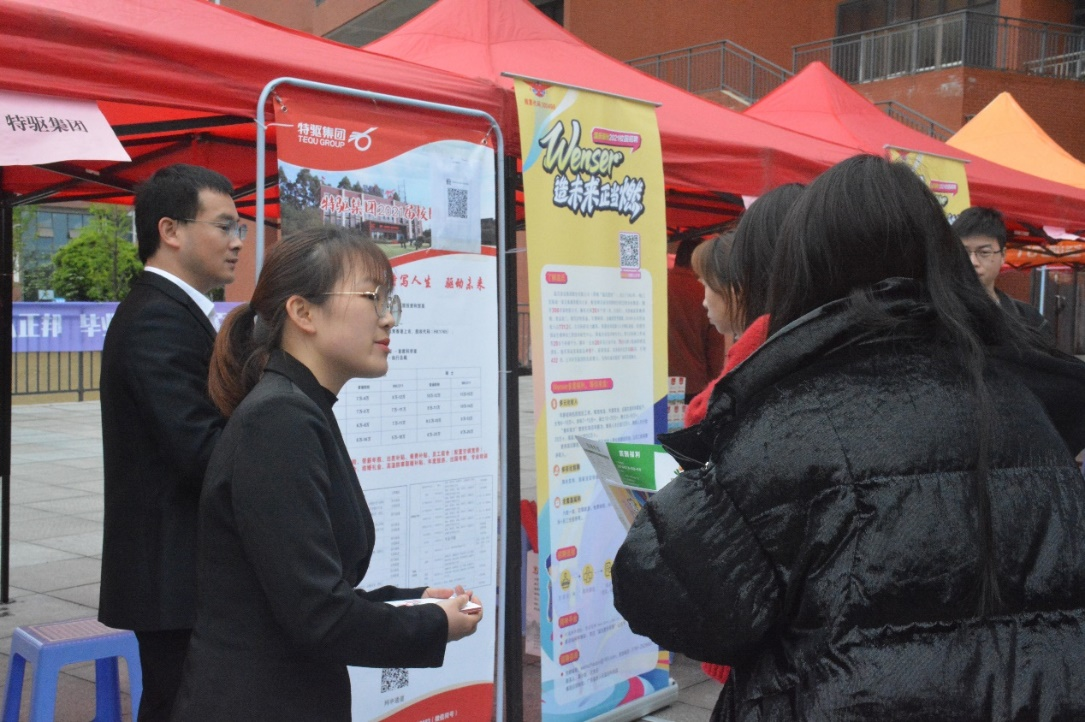 本次招聘会邀请了来自全国20余家用人单位参会,其中有富之源科技(集团)有限公司、温氏食品集团股份有限公司、正大集团农牧食品企业、大北农集团等国内知名企业,并合计推出生物安全工程师、技术研发员、养户管理员等近1000个就业岗位。招聘会分为企业宣讲会和现场招聘会。院党委书记罗聃宁、副书记李秋蓉到场指导,并与企业招聘人员、应聘学生进行交流。