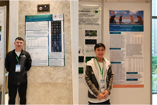 2019级硕士研究生陆忠杰在研究生论坛作了题为《Scanning electron microscopy observations of pollen morphology in common vetch (Vicia sativa) subspecies》的报告并进行了墙报展示,2018级研究生王雷挺、2019级硕士研究生赵鑫、2019级硕士研究生王昭懿、2020级硕士研究生徐进益分别就各自研究进行了题为《Analyses of physiological responses and suppression subtractive hybridization libraries to isolate drought-related genes and provide evidence explaining the drought resistance mechanism of Lotus corniculatus》、《Response of growth characteristics and endogenous hormones of Sophora davidii to low-phosphorus stress》、《不同演替阶段杜鹃灌丛群落特征和生物多样性研究》、《A Comparative Study of Fermentation Quality in Mixed Silage of Wood Forage and Oats》的墙报展示,展现了我院研究生的学术风采。
