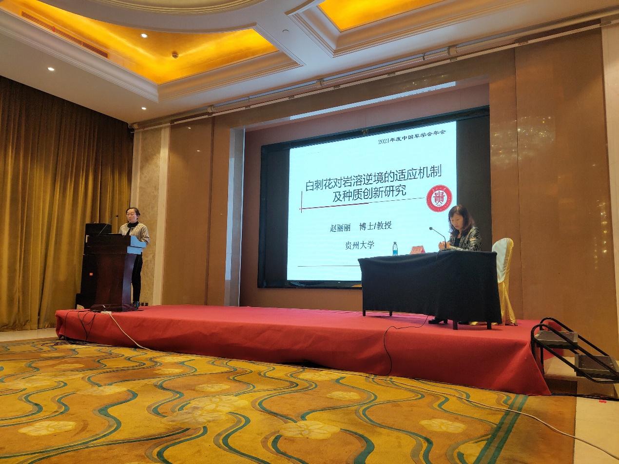师生分别参与了草地生态恢复与管理、草类种质资源保护与利用、草业未来生物技术发展、草业经济与政策、草原综合防灾减灾、草坪与运动场、优质饲草生产与产业升级、草类植物育种与设计、草原综合等9个分论坛报告。其中赵丽丽教授在草类植物育种与设计分论坛所作的《白刺花对岩溶逆境适应机制及种质创新研究》报告引起在场学者对西南岩溶生境下牧草种质创新的浓厚兴趣,并就相关研究进行了热烈讨论,大家一致表示该研究视角独特、持续聚焦、成果集中,是国内草业界灌木植物种质开发方面极具特色的代表工作,期待未来有更多突破性成果展示。