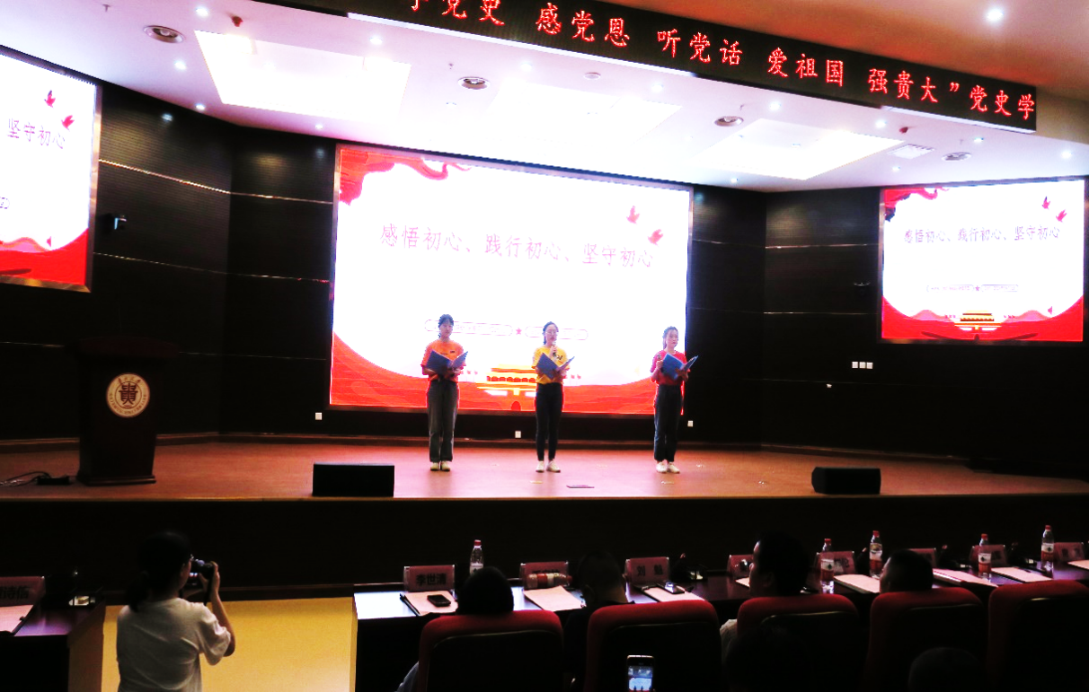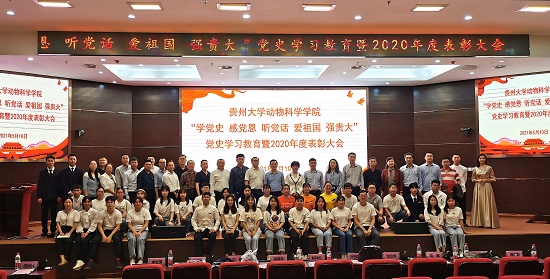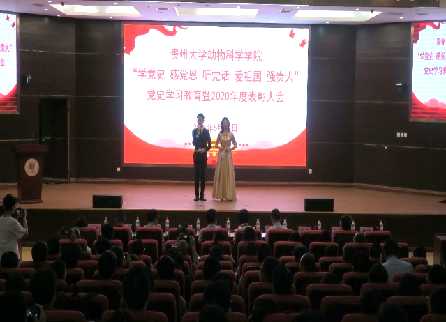 5月10日晚,我院“学党史、感党恩、听党话、爱祖国、强贵大”党史学习教育暨2020年度表彰大会在西校区贤正楼107多功能报告厅举行。校党委副书记令狐彩桃、资助管理中心主任赵祥伦、学生工作部部长刘治军、科学技术研究院院长吴复忠、教务处副处长(主持工作)向嵩、研究生工作部副部长张小彬、校团委副书记(主持工作)刘魁、正处级组织员谭诗信、正大集团贵州区副总裁李世清、大北农集团总监毛宗林、新希望六和云贵战区黔西聚落人力负责人胡志艳受邀出席大会,学院党政领导、教职工及部分学生代表近400人参会。大会由学生冉诗学、那彬彬主持。