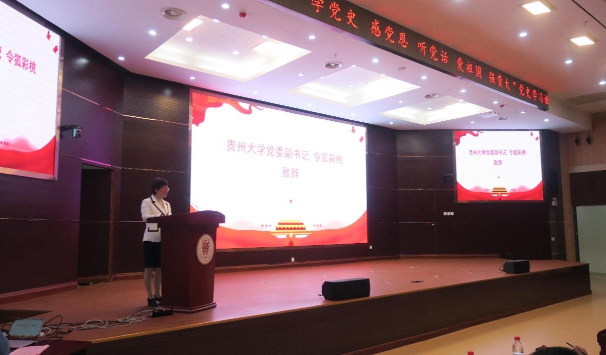 令狐彩桃致辞。她表示,近年来动物科学学院切实加强学科建设,构建学院核心竞争力;扎实推进“博学计划”,务实抓好学生考研和就业工作;切实做好征兵工作,鼓励学生光荣入伍;全院师生团结奋进,拼搏奉献,用梦想承载希望,用实干成就未来;以实际行动诠释了“明德至善 博学笃行”的校训内涵。她指出,此次表彰大会不仅是给获得荣誉的集体和个人加油鼓劲,也是号召学院的全体师生向榜样学习,进一步增添岗位工作和学习的动力,再创佳绩。学院要常持求知之欲,以党史学习教育为契机,坚定理想信念;要常思奋斗之意,以新的历史坐标为起点,厚植家国情怀。希望动科院的全体师生心中装着人民,肩上扛着祖国,把学院发展、个人目标与学校的发展、贵州的发展和祖国的前途命运联系在一起。