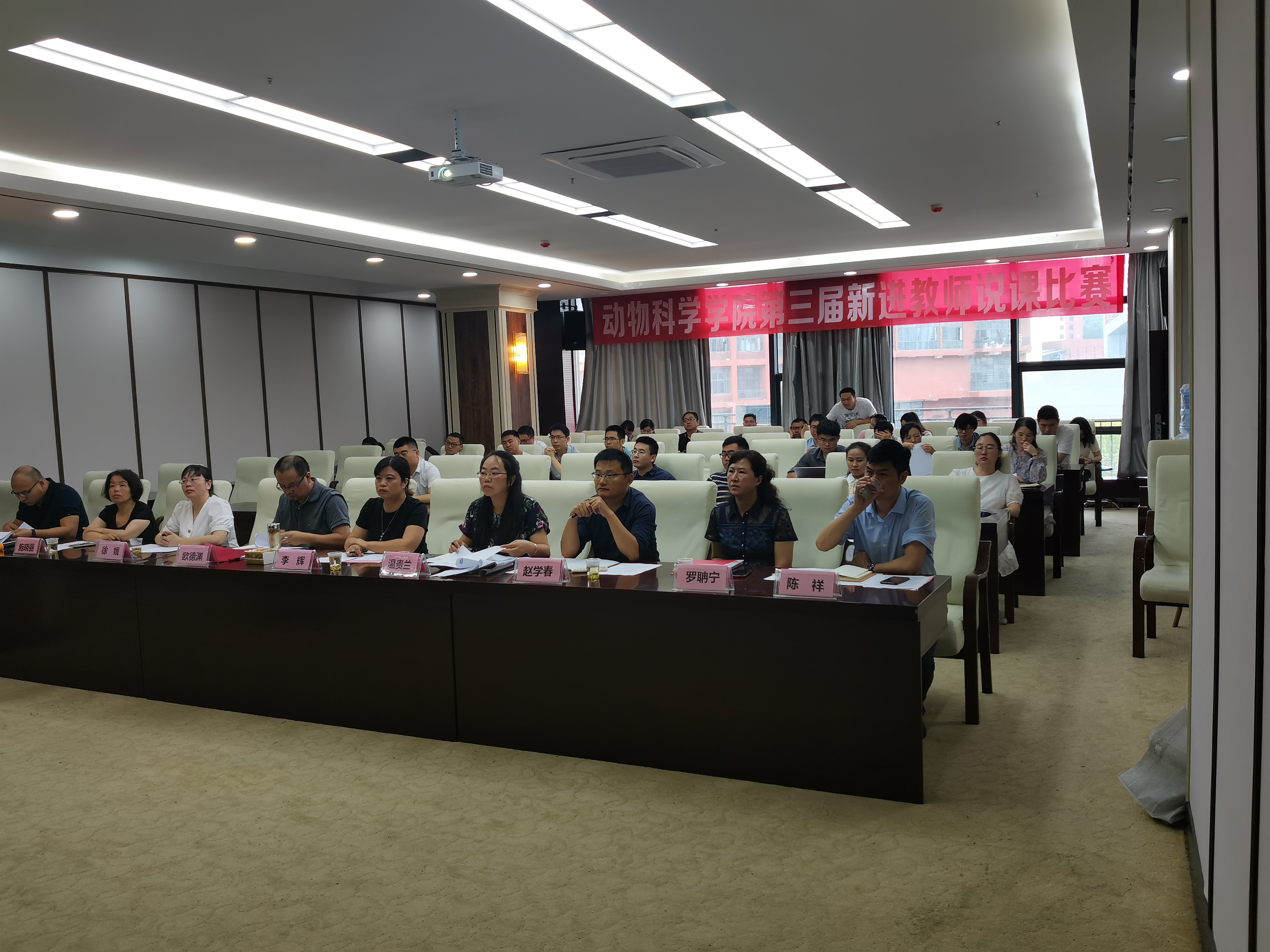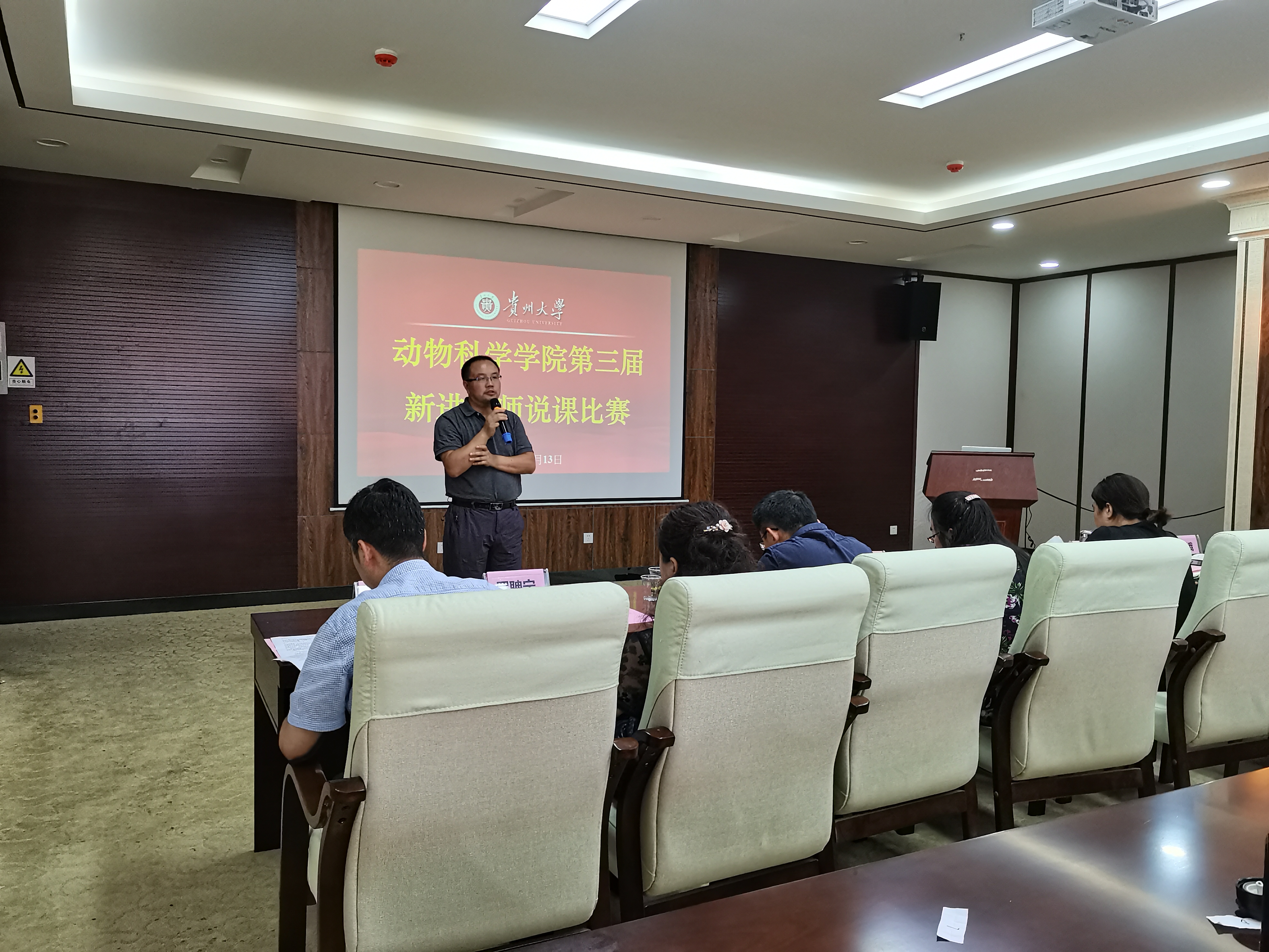 为加快推进我校部省合建和“双一流”建设步伐,按照《贵州大学开展“牢记殷切嘱托、忠诚干净担当、喜迎建党百年”专题教育实施方案》要求,为了提高新进教师教学能力和业务水平,锤炼新进教师教学基本功,提高学院本科教育教学质量,推动我院国家级和省级一流专业建设,2021 年7月13日上午9:00, 我院在崇学楼324举办了第三届新进教师说课比赛。学院党委书记罗聃宁、副院长欧德渊、陈祥出席大赛,各系青年教师现场观看了此次大赛,大赛由陈祥主持。