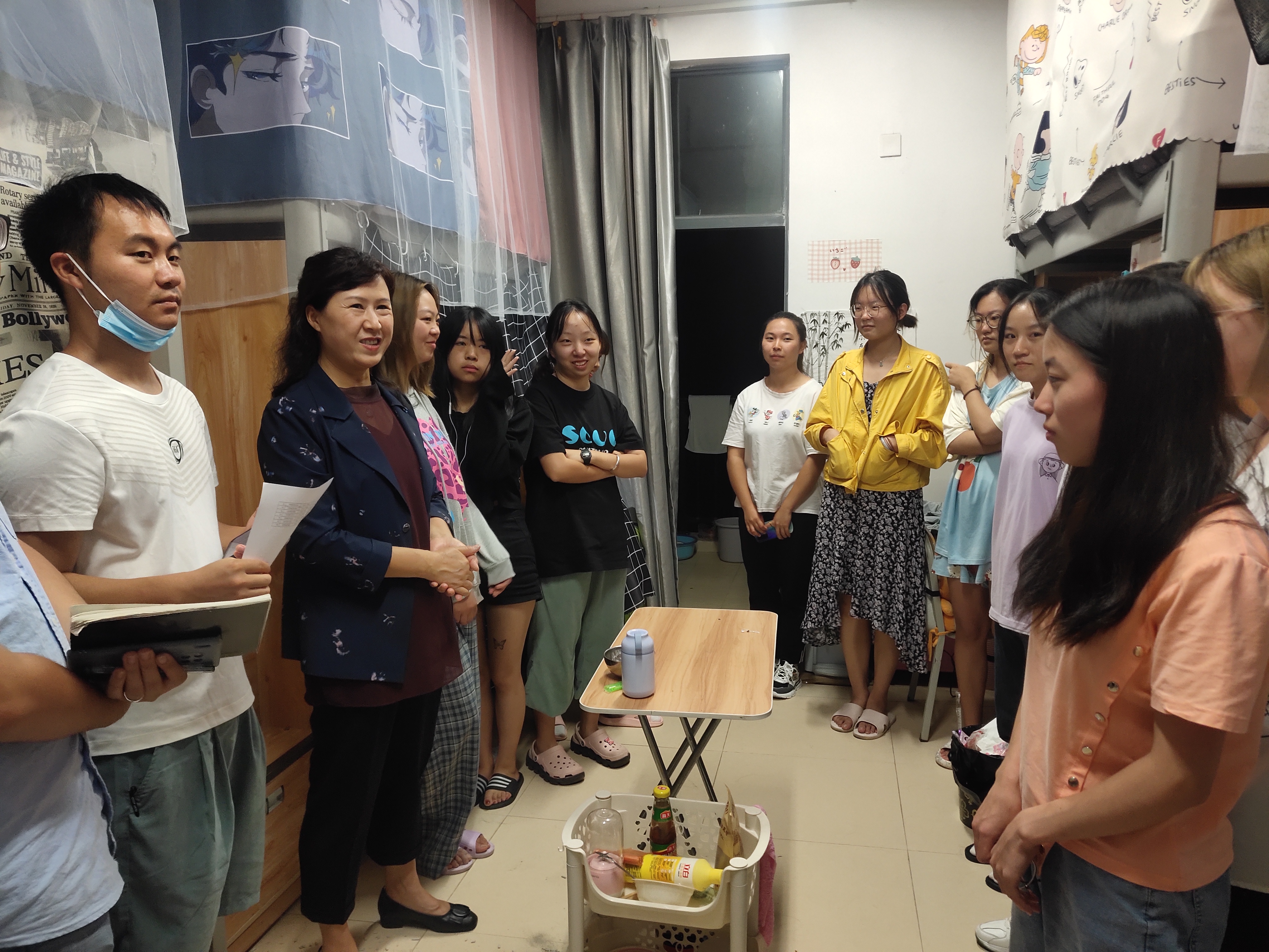 为了解同学们的安全返校情况以及学习生活情况,2021年10月7日晚,我院党委书记罗聃宁、副书记李秋蓉带领学生科和研究生科辅导员、全体班主任走访了本科和研究生寝室。