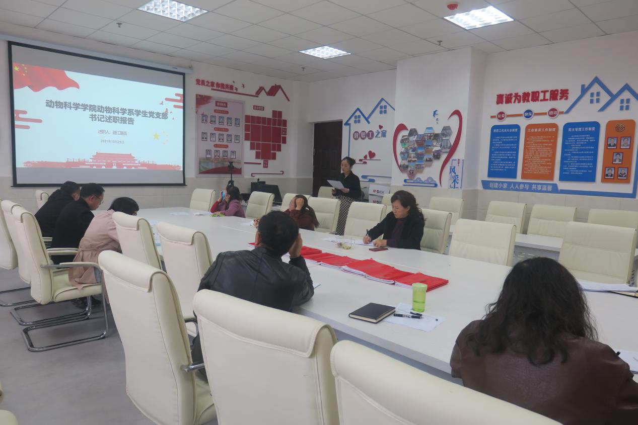 最后,罗聃宁对院属支部书记的述职情况进行了讲评,反馈了各支部“三会一课”、党史学习教育、“牢记殷切嘱托、忠诚干净担当、喜迎建党百年”专题教育等方面的检查评议情况。针对各支部党建工作中存在的问题进行了深入地剖析,并提出了具体的要求。她强调:院属各支部要紧紧围绕新时代党的建设总要求和新时代党的组织路线,按照教育工委、校党委的统一安排部署,对标对表学院“四抓四强化”的党建目标,规范支部组织生活和支委会会议、主题党日活动等,切实加强党支部建设,推进党史学习教育走深走实,深入落实“我为群众办实事”实践活动,以立德树人为己任,为建设百姓富、生态美的多彩贵州新未来贡献动科人的力量。