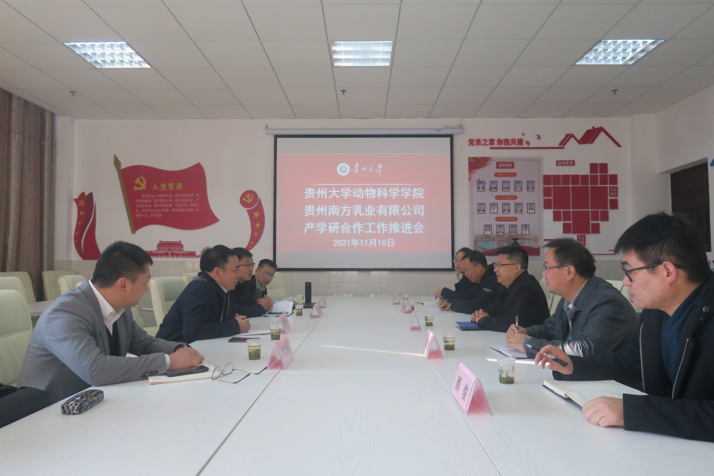 11月10日上午9:00,在崇学楼206会议室,为落实和推进我校与贵阳市农投集团产学研合作工作,我院与贵州南方乳业有限公司召开了推进会。贵州南方乳业有限公司总经理张定奎、养殖总监王海滨、养殖副总监江亚辉、养殖副总监李文锐一行四人到访,我院院长陈超、副院长欧德渊、动物科学系系主任张依裕、草业科学系系主任郝俊、动物医学系副主任温贵兰参加了此次会议。会议由欧德渊主持。