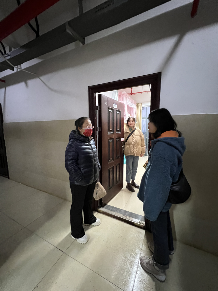 为了解同学们安全返校情况以及学习生活情况,2022年2月27日晚上,学院党委副书记李秋蓉带领学生科和研究生科辅导员、全体班主任走访了本科和研究生寝室。
