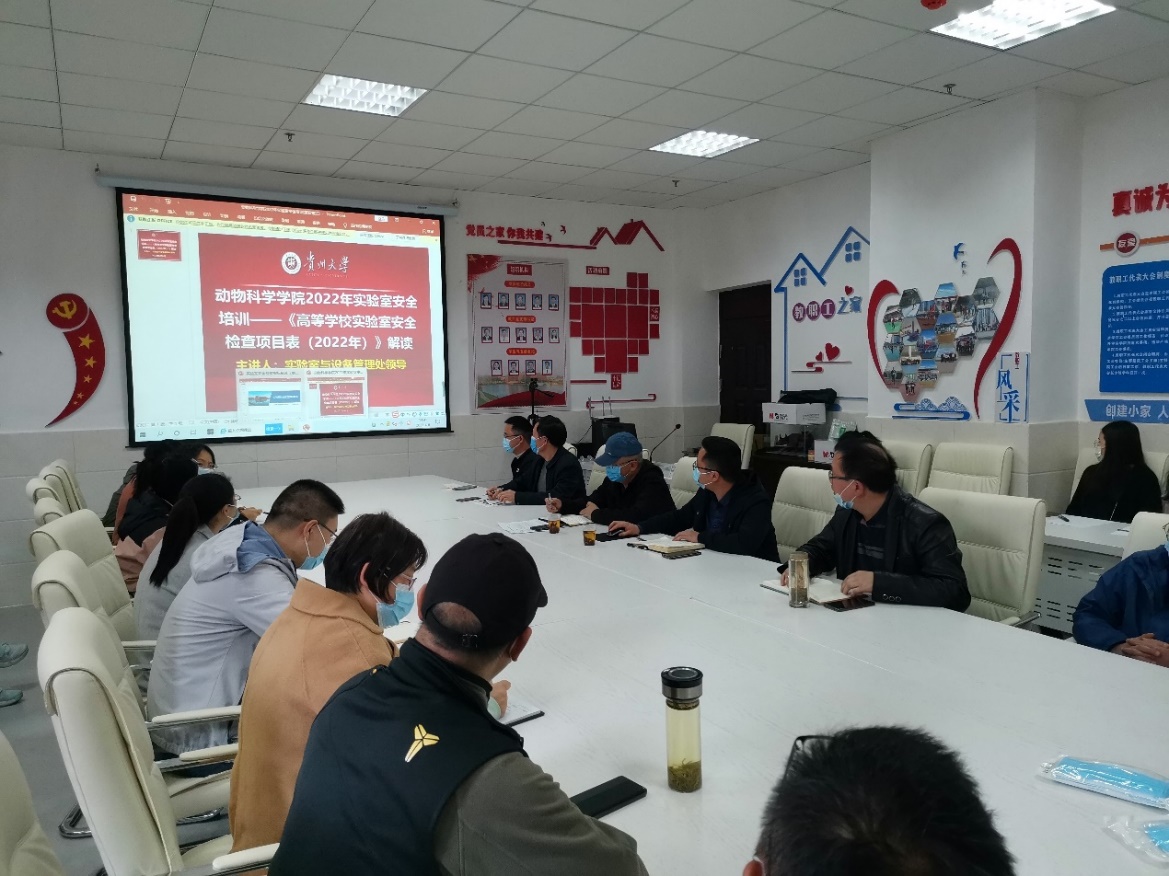 4月6日下午,实验室与设备管理处副处长赖力斌、实验室安全技术科科长陈坚一行到崇学楼206会议室召开动物科学学院2022年实验室安全培训会。各系实验室负责人、研究生代表和全体实验人员参加会议。会议由动物科学学院副院长欧德渊主持。