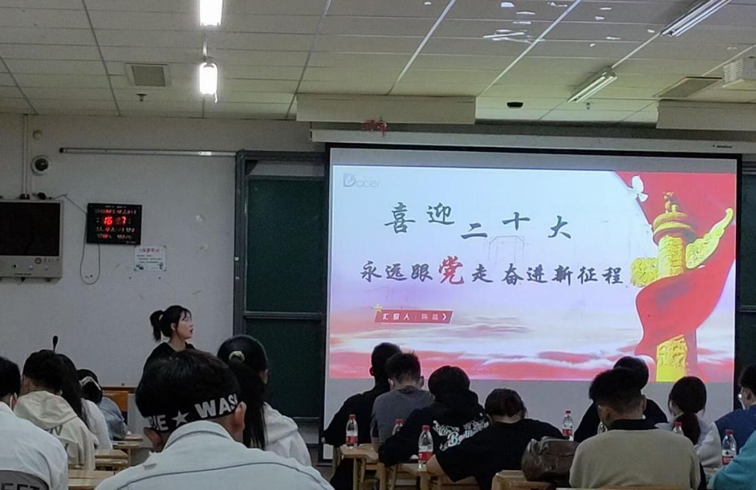 “青春的力量不是时光的力量,而是梦想的力量...”,各团支部讲解员紧紧围绕主题侃侃而谈,他们以PPT的形式展现了各支部一月来开展的丰富多彩的团组织活动,展示了如何引导团员青年们牢固树立理想信念,紧密团结在党的周围,致力于校园文化建设、学风建设、精神文明建设的过程;展现了团员青年们用勤劳和智慧为美好的明天夯实基础、不懈奋斗的精神风貌。