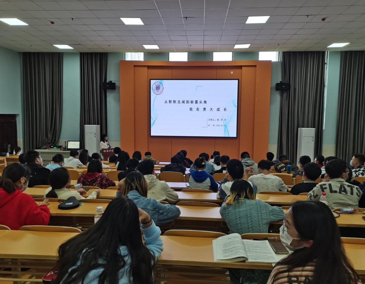 陈平平从学习、实践和经验等方面进行了分享,她特别介绍了英语的学习心得,她鼓励同学们明确学习目标,详细制定计划表,充分利用好上课时间并及时复习,远离自己的舒适圈,学会自我激励,充分挖掘自身的潜能,要有独立思考的精神,不要过分依赖于书本和权威。