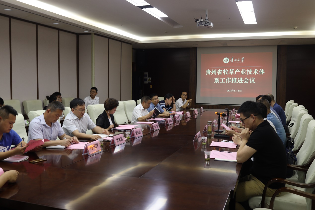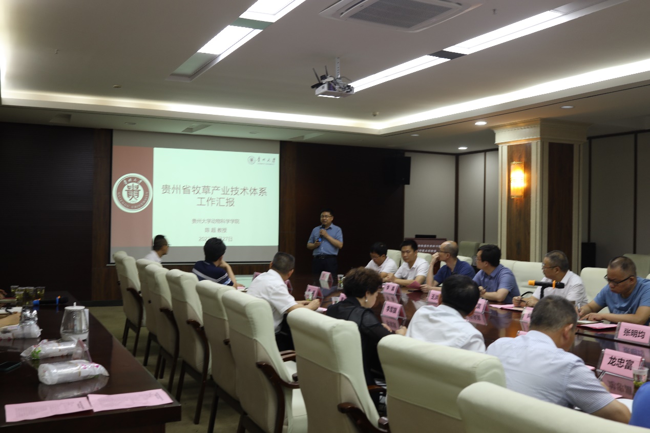 为总结贵州省牧草产业技术体系成果,加强技术经验交流, 6月27日下午,贵州省牧草产业技术体系2022年度工作推进会在贵州大学动物科学学院324会议室召开。省科协副主席杨泳滨、党建办副主任李晶,省农业农村厅科发中心王洪亮、畜禽遗传资源管理站站长张明均,省牛羊产业发展专班杨丰和王松,省肉牛产业技术体系首席科学家莫本田,省肉羊产业技术体系首席科学家尚以顺,贵州大学对外合作处处长刘颖、研究生院副院长张欣、科研院副院长黄永光及牧草体系成员参加了会议。会议由牧草产业技术体系首席科学家、动物科学学院院长陈超主持。
