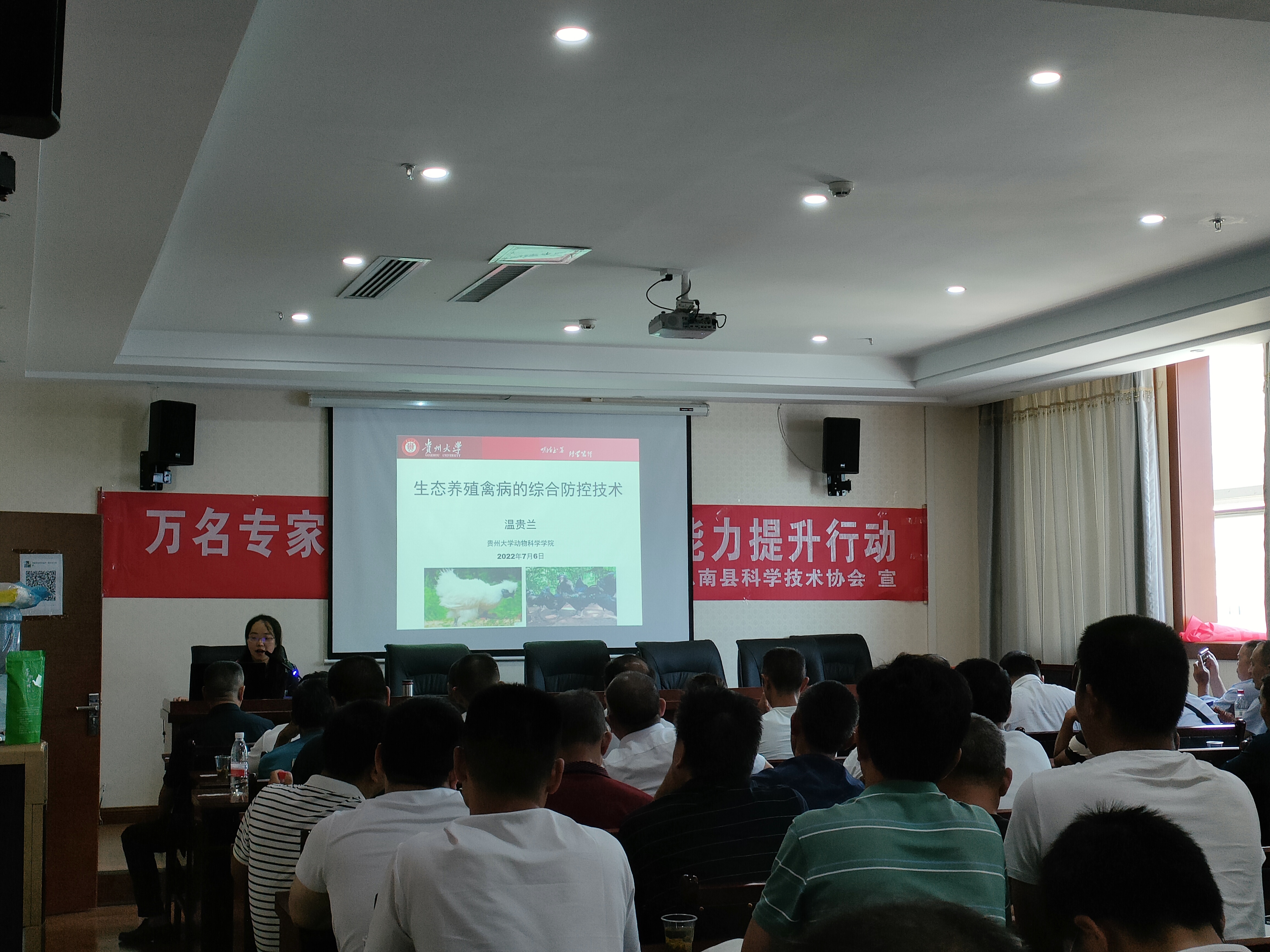 助力乡村振兴,动科在行动。为切实提升基层兽医工作者业务能力,助力思南县乡村振兴,7月4日至7日,我院被选派思南服务的省科技特派员温贵兰、汪德生、张太前三位教师为思南县2022年乡村兽医登记备案暨动物防疫能力提升培训班学员进行了为期4天的授课,来自全县28个乡镇的兽医防疫员、农业服务中心技术人员共计220人参加培训。