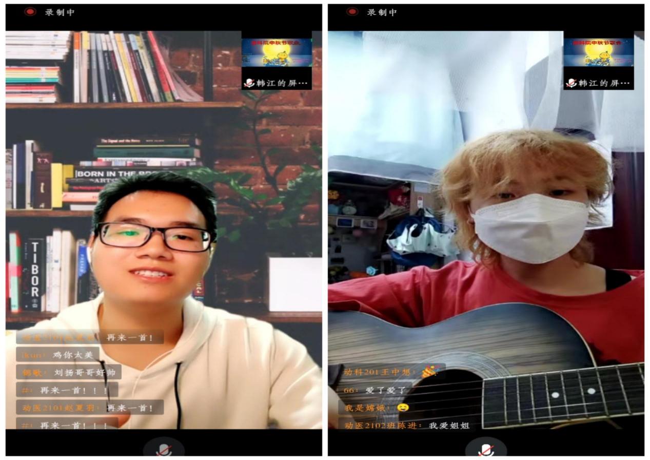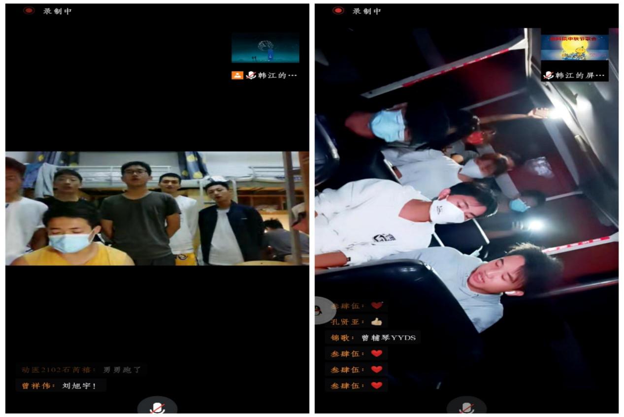 第二个板块以“佳节同庆,欢乐同歌”为主题。在严格遵守校园疫情防控各项要求的前提下,学院团委灵活应用线上的形式开展了中秋云端晚会,晚会主要通过腾讯会议APP举办。学院2019-2021级本科生共11个班级参与,同学们或以团体或以个人的形式表演节目,在云端共唱欢乐之歌,共享快乐之情。