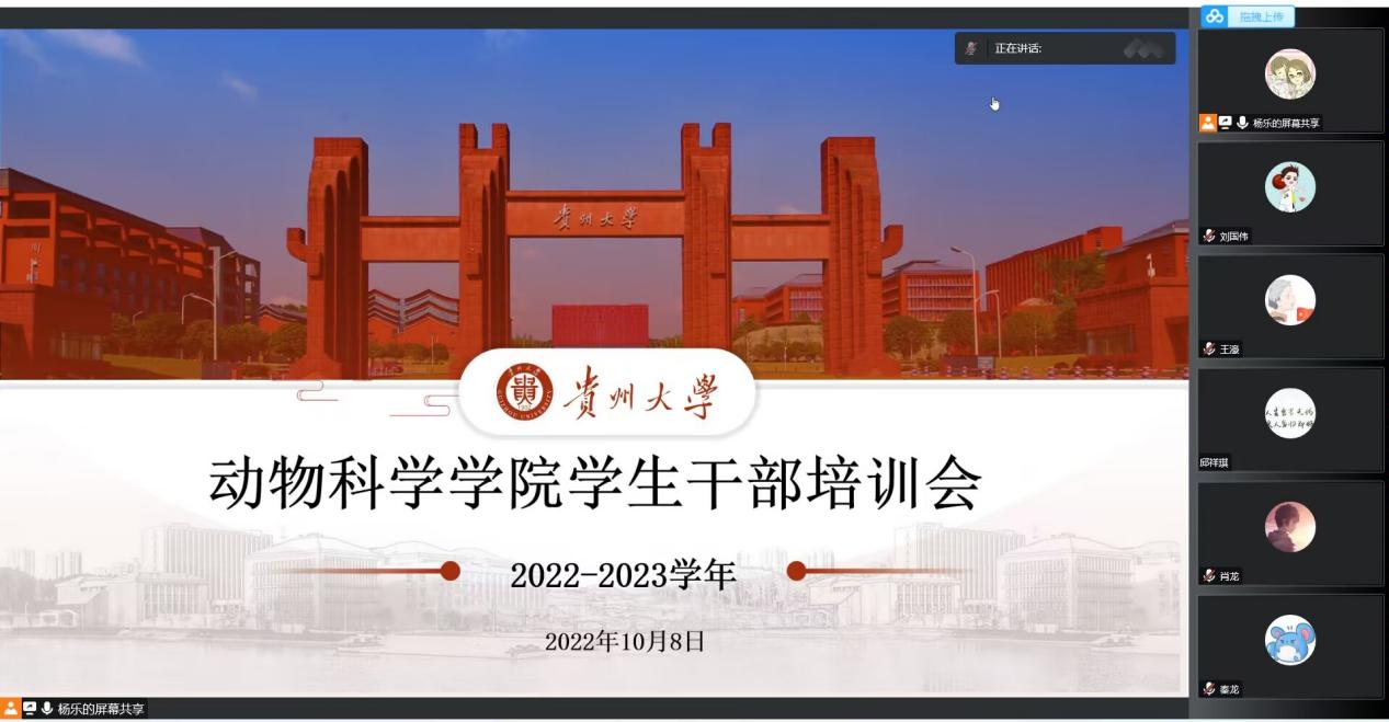 为喜迎党的二十大胜利召开,进一步加强青年学生干部爱国主义教育,提升学生干部队伍素质,学院于10月8日中午召开全院学生干部线上培训会。学院党委副书记杨乐代表学院对全体学生干部进行培训。