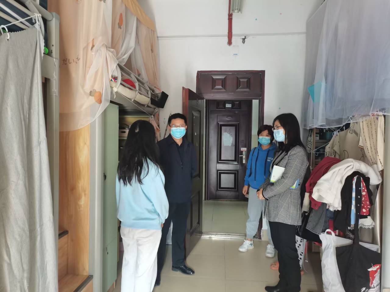 为关心了解疫情期间同学们的生活学习情况, 10月15日上午,校实验室与设备管理处姚丽华处长在动物科学学院院长陈超及值班班主任李辉老师的陪同下走访了动物科学学院动医201班本科生和2021级兽医研究生部分寝室。