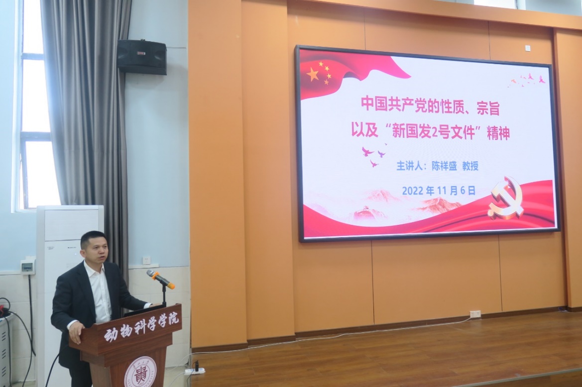 11月6日下午,副校长陈祥盛在崇学楼131报告厅为动物科学学院第三十七期入党积极分子培训班授课,入党积极分子40余人参加。