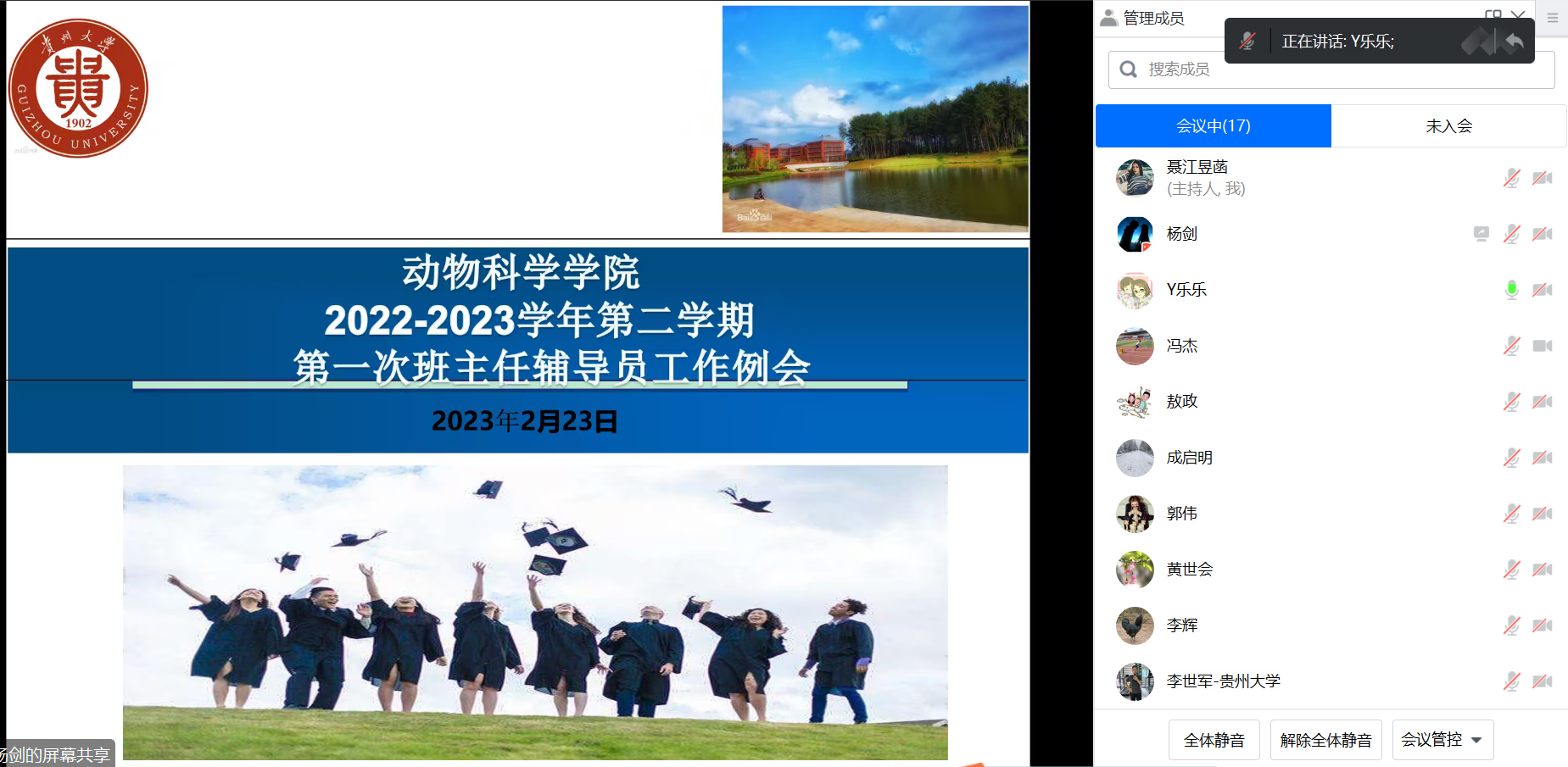 为确保新学期各项工作有序推进,增强思想政治工作的时效性,不断提高学生管理工作的质量和水平。2023年2月23日,动物科学学院召开新学期班主任辅导员工作会议,全体辅导员、班主任参加会议,会议由院党委副书记杨乐主持。