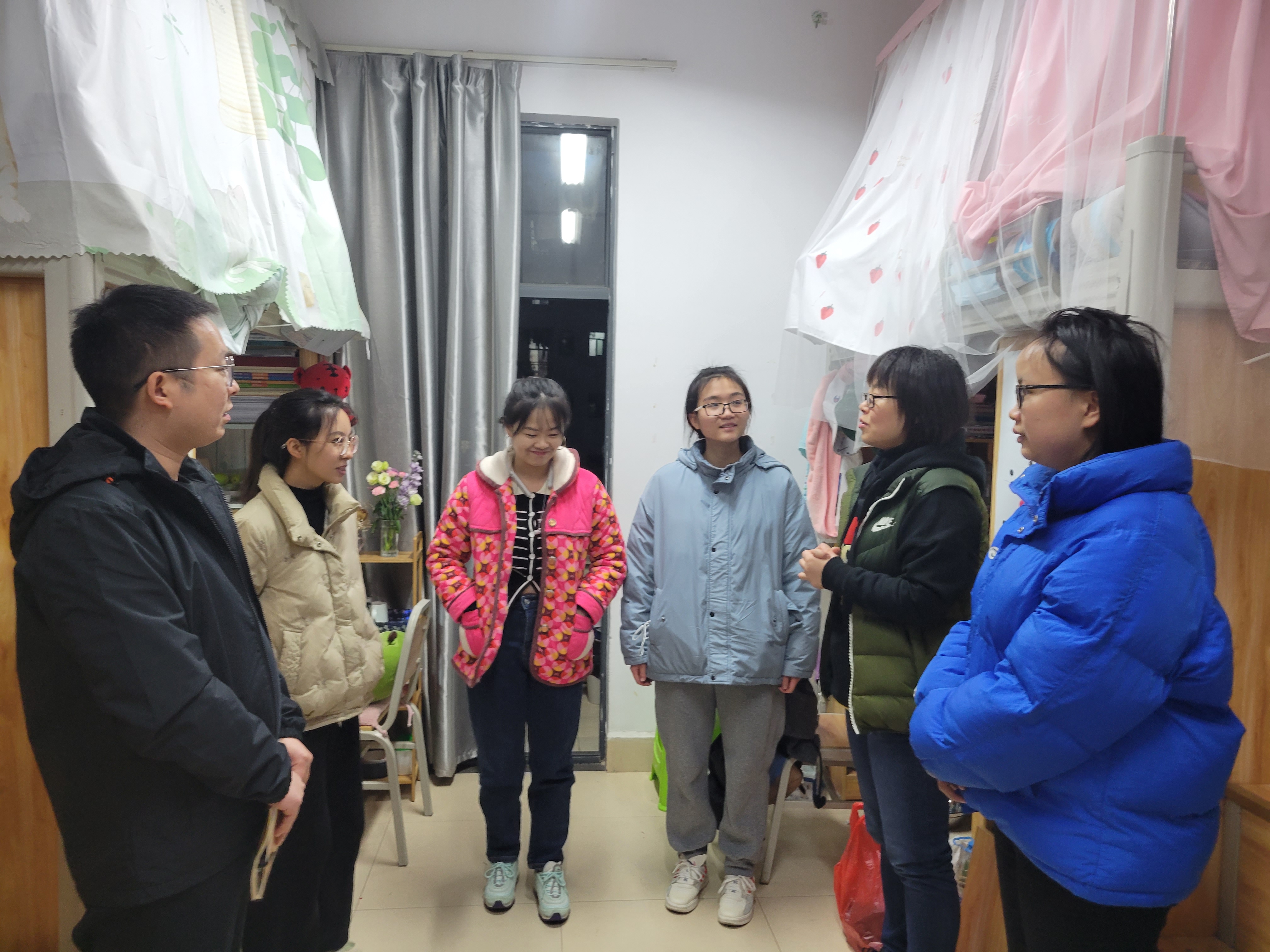 此外,为了解同学们的安全返校情况以及学习生活情况,进一步加强宿舍安全管理,敦促学生保持良好的学习生活习惯,以积极的状态迎接新学期。2023年2月26日晚上19:00,杨乐副书记带领学生科和研究生科辅导员、全体班主任走访了本科和研究生寝室。