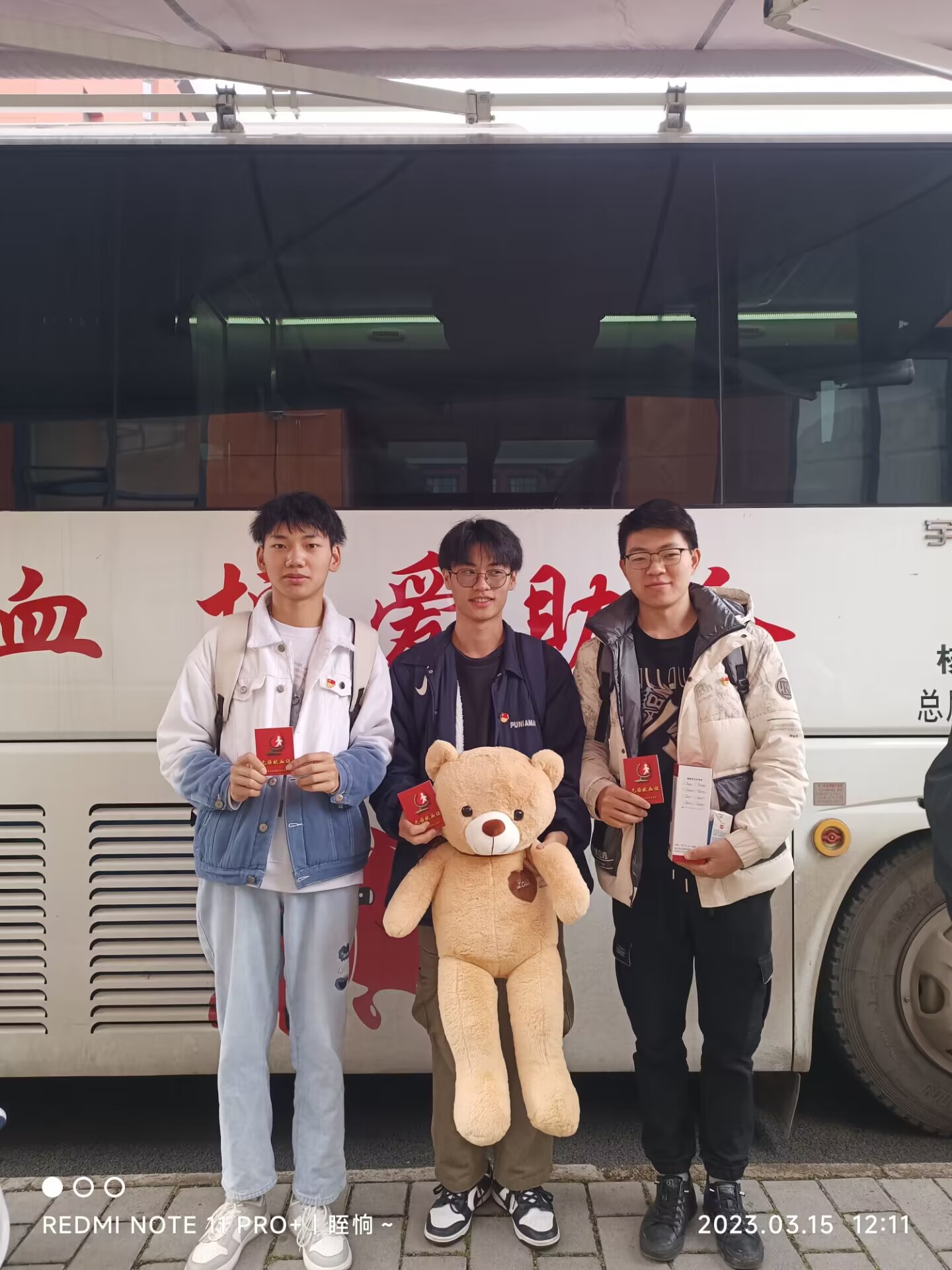 2023年3月15日,支部党员刘英渠、孟忠名、彭兵在医务人员的引导下排队进行无偿献血,他们认真聆听医生讲解献血注意事项,填写无偿献血登记表、接受健康征询、体温检测、血压测量、血液初筛等环节。