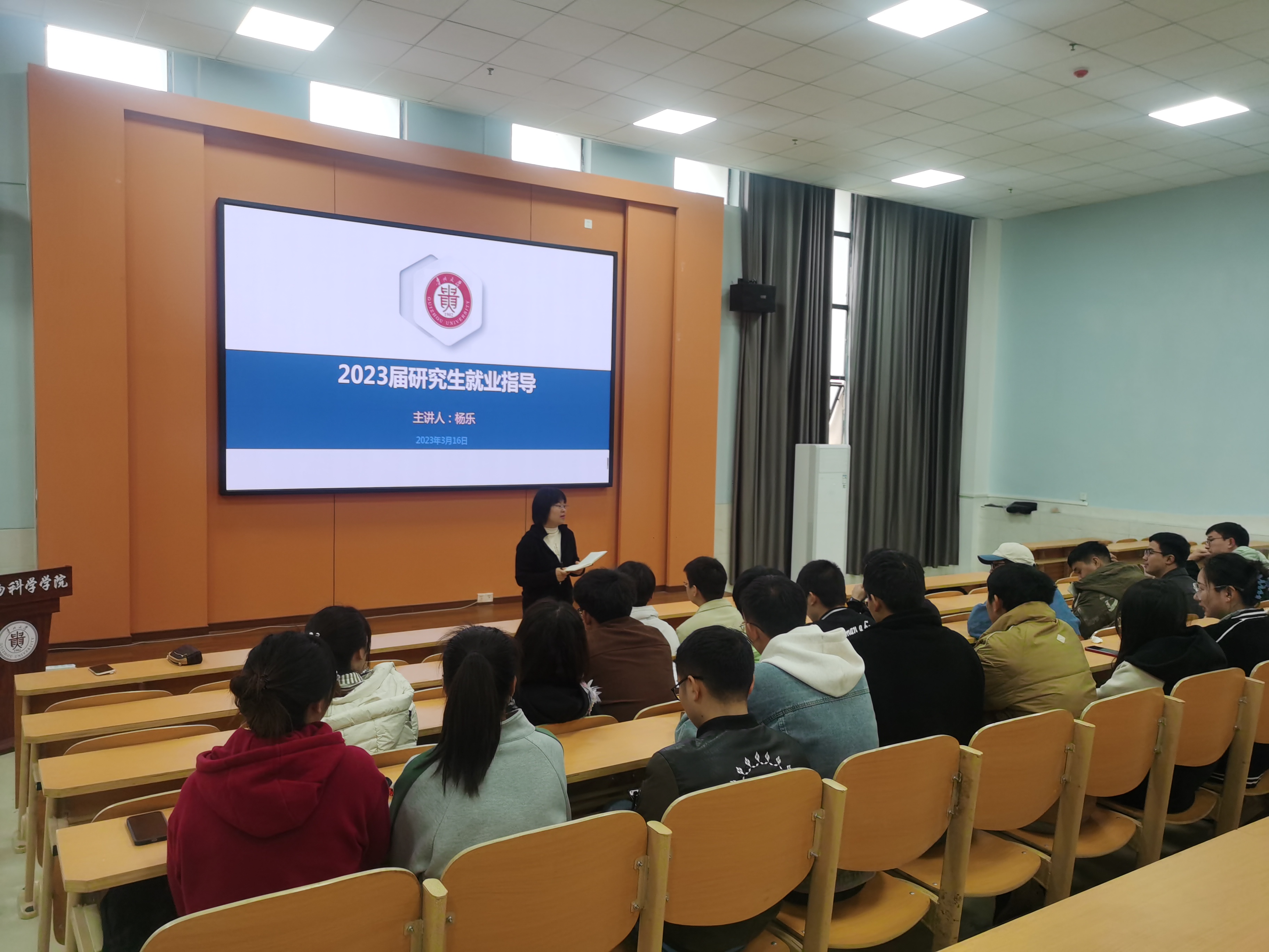 3月16日上午,贵州大学动物科学学院在崇学楼131报告厅举行2023届毕业研究生就业指导讲座,学院党委副书记杨乐主讲,2023届全体在校研究生参加会议。