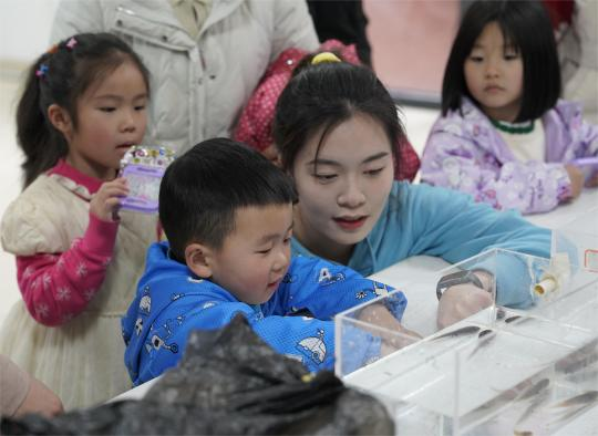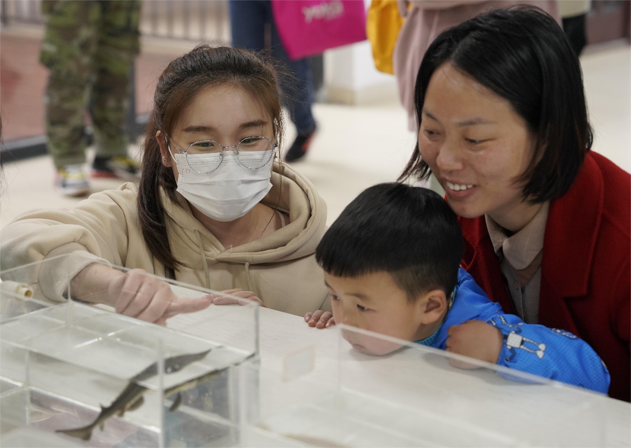 会后,小朋友们在水产科学系研究生的带领下,参观了学院所藏标本及活体的水产动物。参观完毕后,每个小朋友都领取到了自己的礼物——小金鱼。