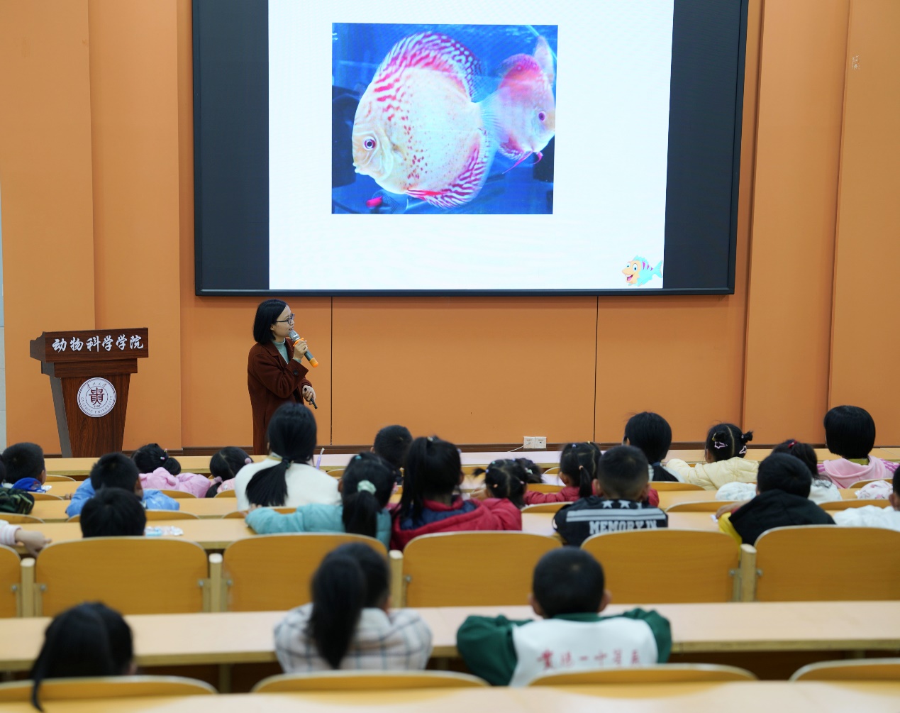 讲座上,主讲教师、教工第五党支部书记马秀慧从奇妙的鱼儿讲起,系统地为小朋友们普及了鱼类学、鱼类化石及不是鱼的“鱼”等知识,并对如何辨别这些鱼类进行了科普,指出了这些鱼的特点,还与小朋友们进行了寓教于乐的互动答题,让小朋友们在轻松愉快的氛围中扩充了鱼类知识储备。