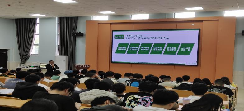 邀请与我院学科专业联系紧密的企业高管为学生讲授职业生涯规划授课是我院促进学生就业主题教育系列活动之一,为服务好学生就业和实习实践需求, 4月17日,我院邀请正大集团贵州区人力资源总监苟朝川在崇学楼131报告厅为正大班学员及2022级学生授课,会议由学生科辅导员聂江昱菡主持。