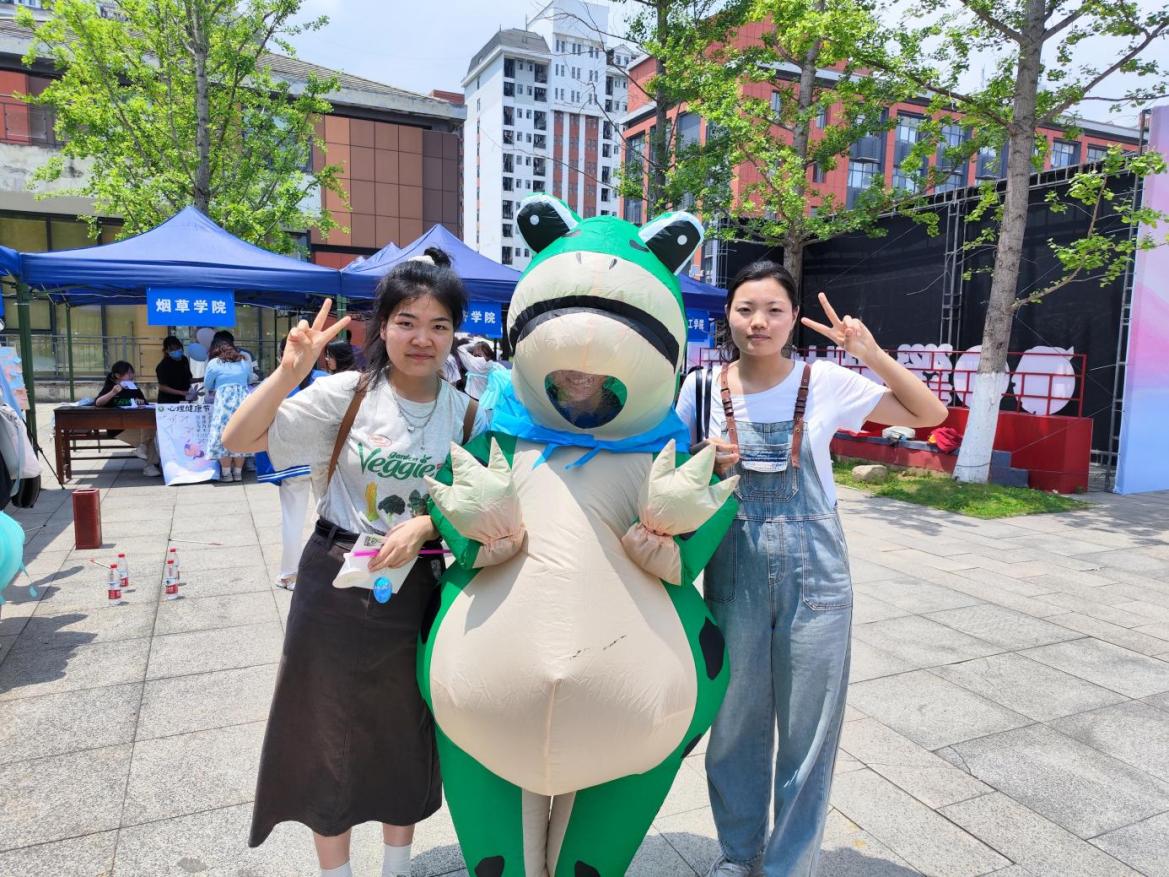 活动现场,两位志愿者穿上可爱的“皮卡丘”和“青蛙”卡通玩偶服,和每一个路过的同学打招呼,并鼓励同学们积极参与“爱的抱抱”,同时为参加活动的同学们赠送精美的小礼物。