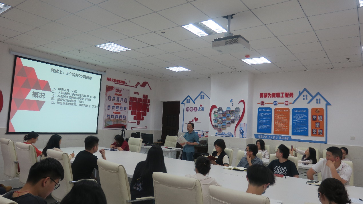 5月30日,学生党支部书记盛律平授课《发展党员工作程序》。以《贵州省发展党员工作规程(试行)》为指导详细讲解党员发展的5个阶段25项程序,确保发展党员工作有计划、有步骤地进行,确保党员发展材料规范完整。