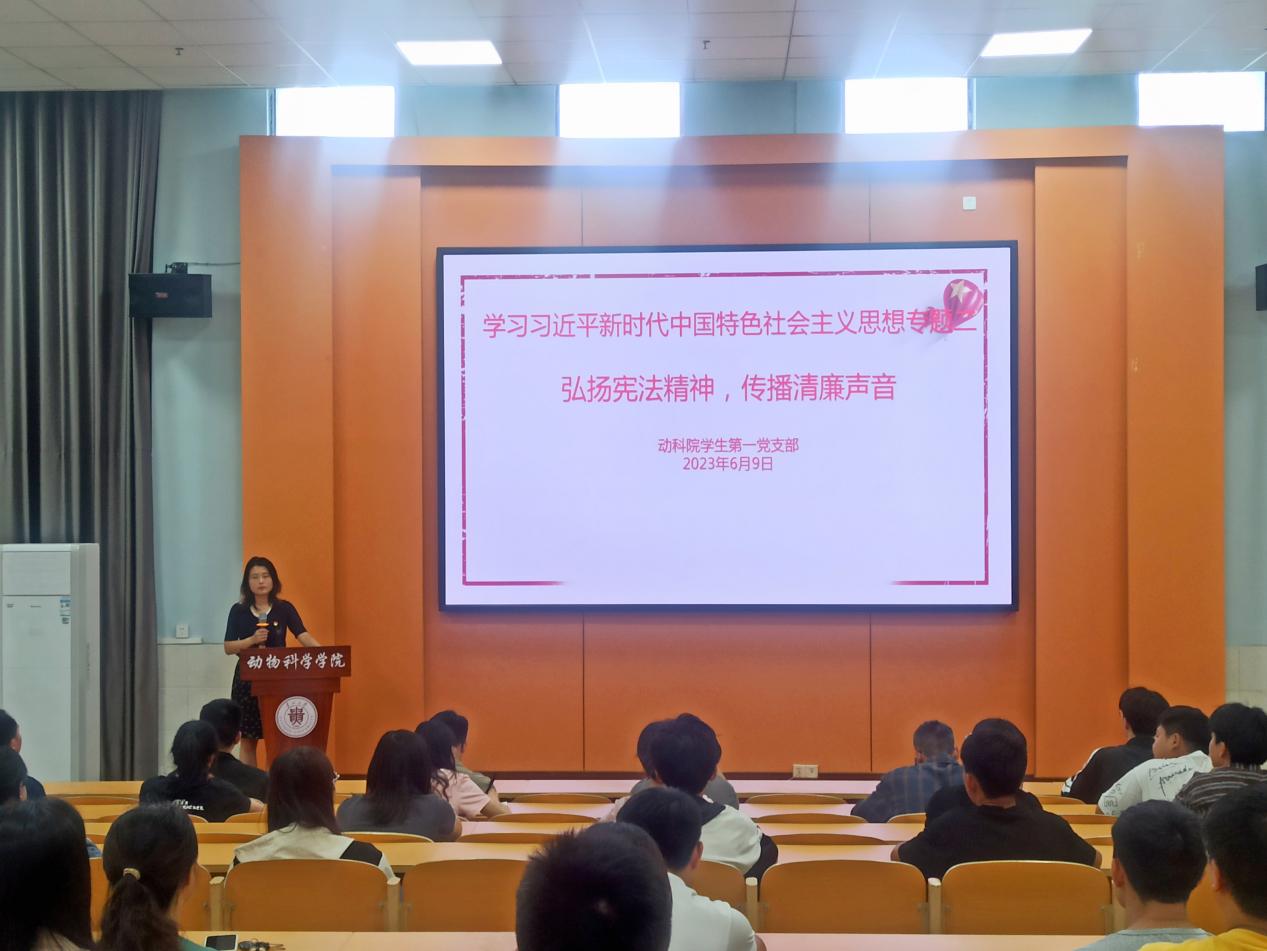 分享会前,蒋洋桃带领参会同学进行了以“弘扬宪法精神,传播清廉声音”为主题对习近平新时代中国特色社会主义思想进行了专题学习。