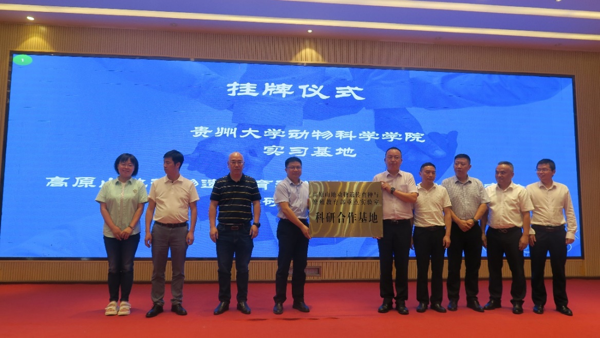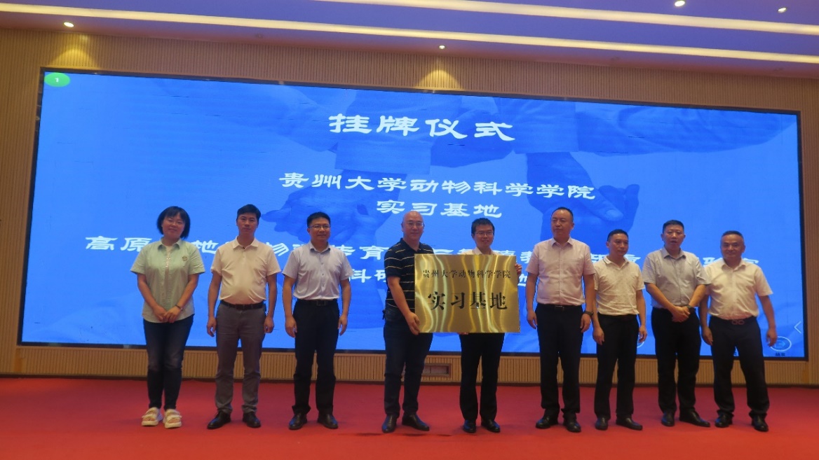 黄剑与富之源科技集团技术研发中心总监李忠超共同为“贵州大学动物科学学院实习基地”基地揭牌。