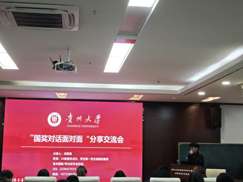 为充分发挥国家奖学金获得者的榜样示范作用,引导学生树立远大理想、锤炼过硬本领,2025年11月27日,动物科学学院研究生团总支在崇学楼324会议室举办了“对话国奖 砥砺前行”国奖面对面经验交流分享会。本次活动邀请了两位在学业、科研与综合素质方面表现突出的2024-2025学年度国家奖学金获得者——刘英渠、梁绍波作为分享嘉宾。会议由2025级学生刘璐主持。