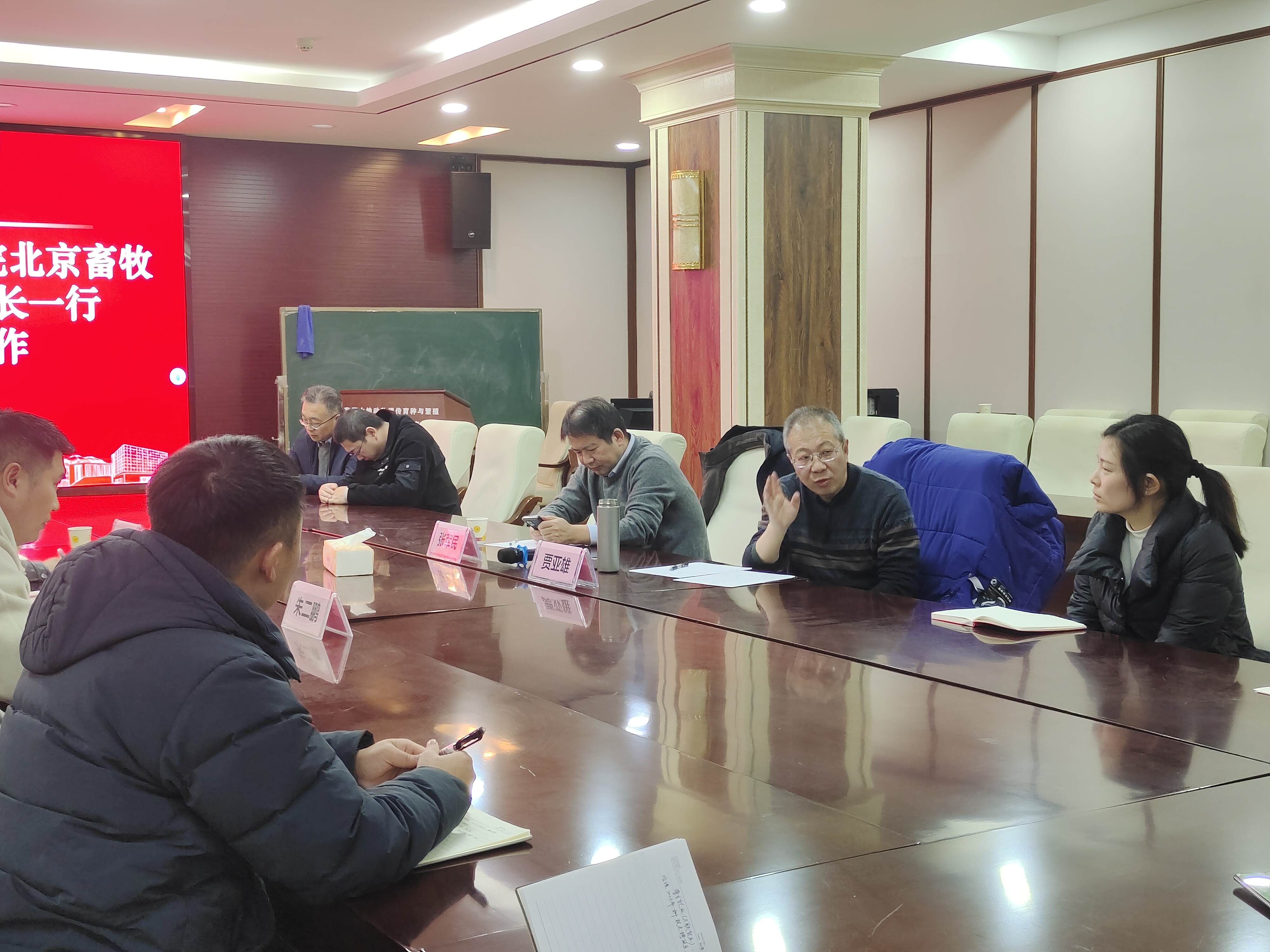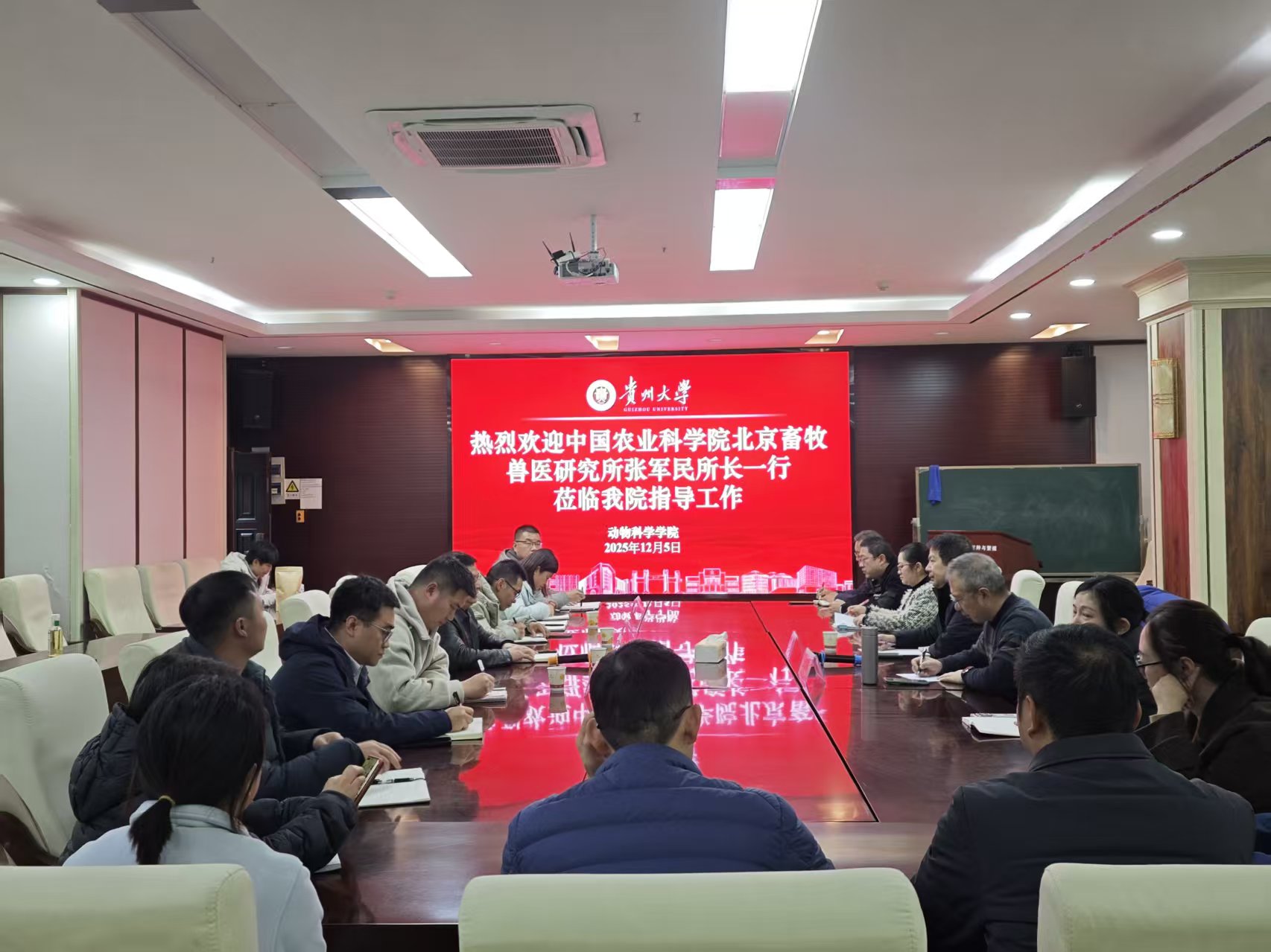 2025年12月5日,中国农业科学院北京畜牧兽医研究所所长张军民、科技处处长贾亚雄一行到我院开展调研交流座谈。动物科学学院党委书记陈超、党政办副主任熊建民及各系负责人、教师代表参加会议。