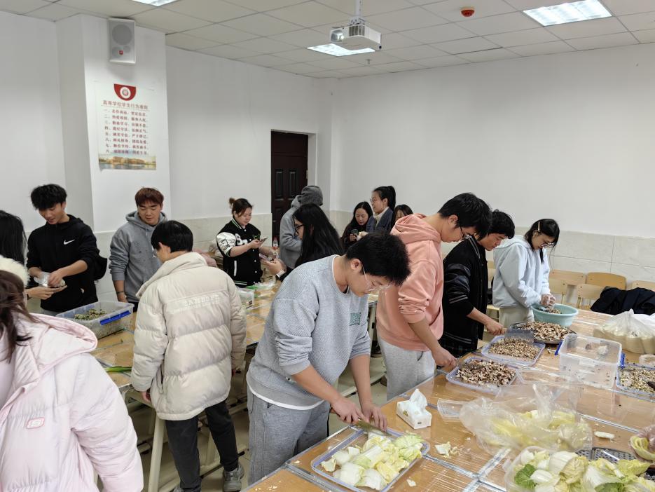 活动开始前,研究生会与团总支成员提前到场进行完成了清洗、切菜、拌馅等准备工作,精心准备了白菜猪肉、韭菜猪肉、香菇猪肉三种馅料,为活动的顺利开展提供了保障。