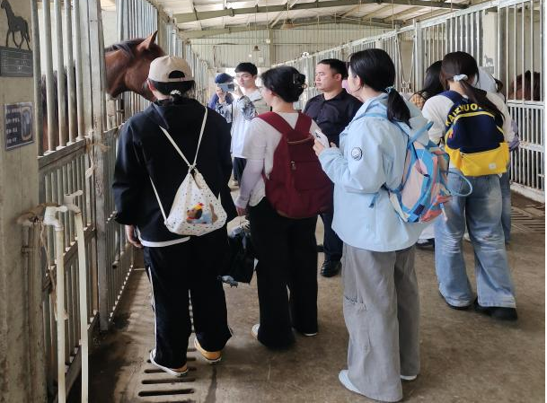 随后,团队师生前往当地马舍开展实地走访学习。大家结合课堂理论知识,近距离观察直观掌握各类马种的外形特征、饲养管理要点以及用途差异、防病治病等,在实践中深化对畜牧专业的理解,真正实现理论与实践的有机衔接。